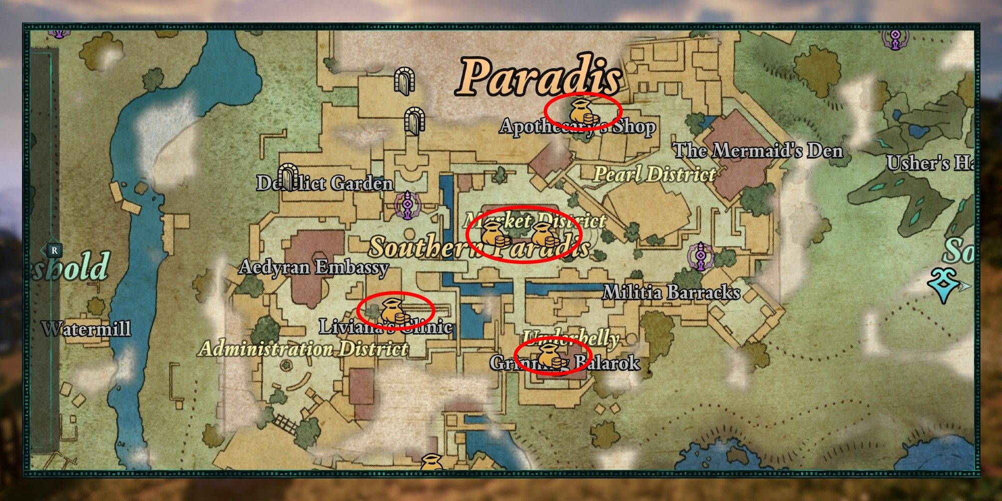 In the opening act of Paradis, you’ll stumble upon Liviana, who runs a small clinic straddling the edge of the Underbelly and Administration District. Her inventory might not be expansive, but it’s stocked with essential healing items that could prove invaluable after a grueling battle. As she carries five of each potion type, she’s undoubtedly your go-to for restocking those vital elixirs. Moreover, Alls Leaf Tea, an essence restoration item offering a 20% boost to your max essence, is a must-have, especially for those who rely on magical abilities.