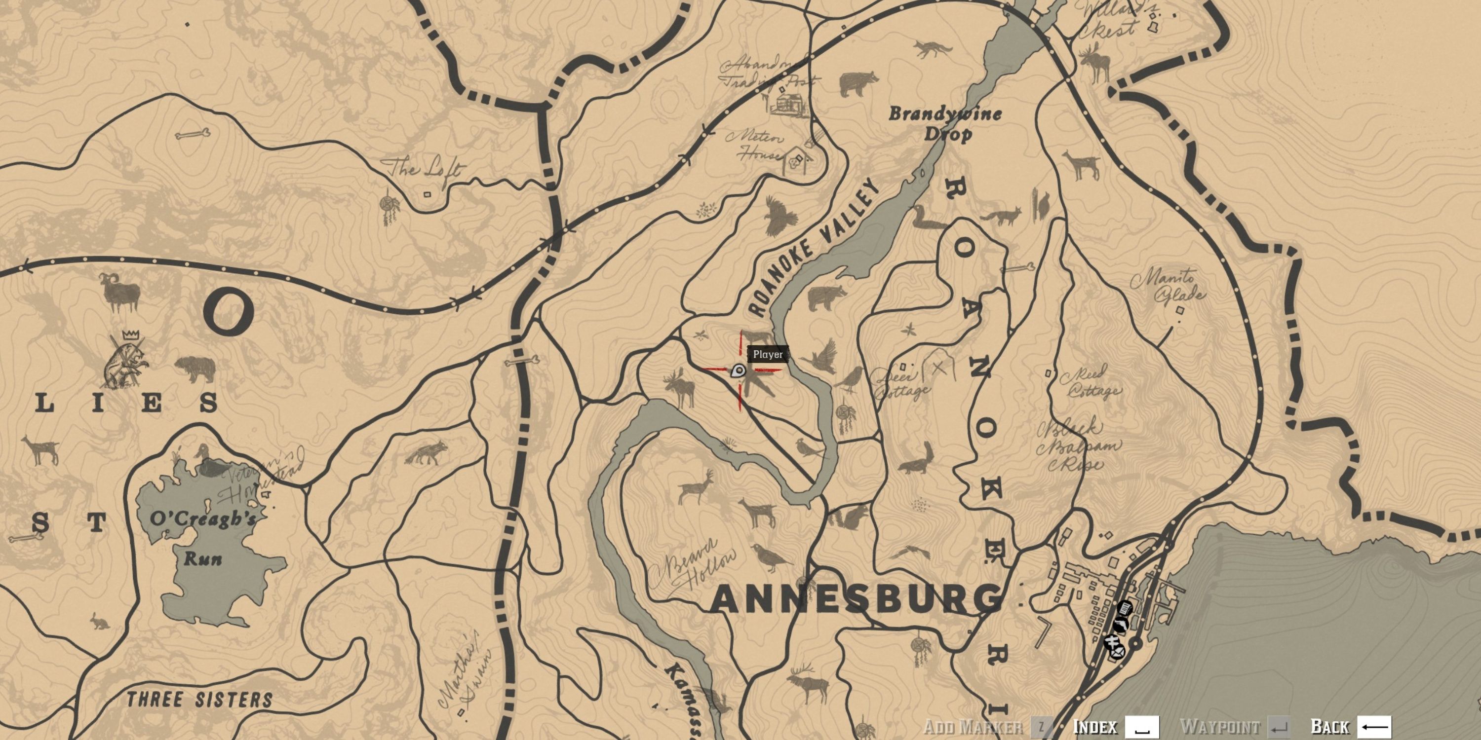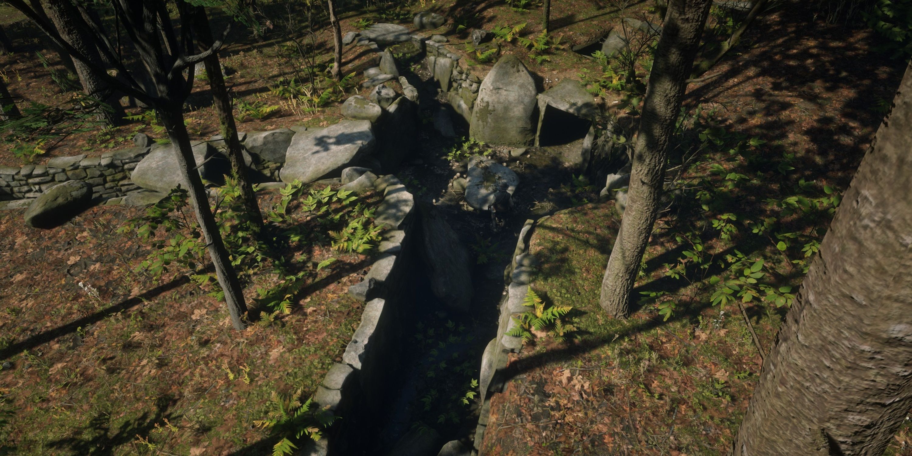 Сцена довольно необычна, и ее можно легко упустить из виду, так как она скрыта глубоко в лесу, место, часто избегаемое игроками из -за угрожающего присутствия банды Мурфри, которая, как известно, охотятся и засаду в регионе Роанока Нью -Ганновера.