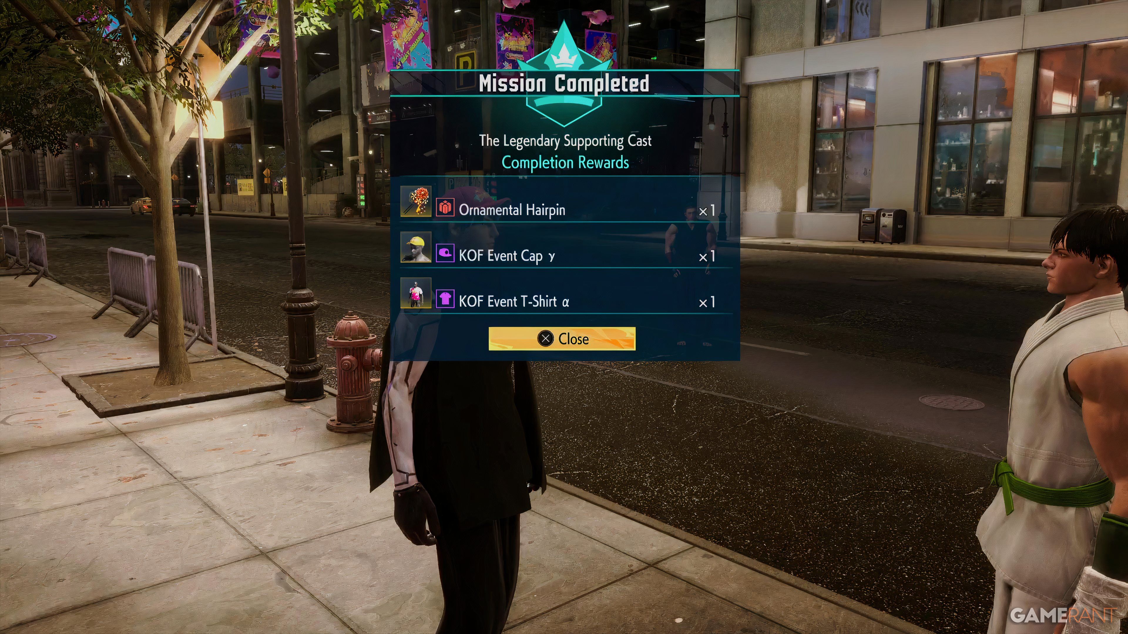 Как только вы закончите все сражения, вы будете вознаграждены декоративной шпилькой, кепкой для событий KOF и футболкой KOF Event ‘A’.