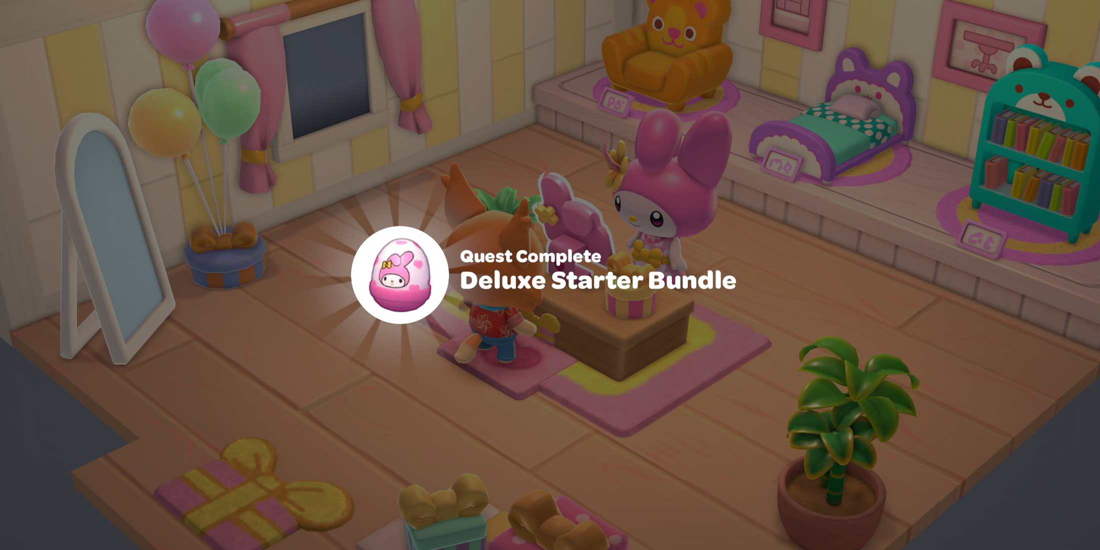 Купив специальное издание Deluxe Edition игры «Hello Kitty Island Adventure», вы не увидите, как ваши награды магическим образом появляются в игре. Вместо этого вам нужно будет выполнять эксклюзивные миссии, чтобы открыть каждый пакет наград. После выполнения этих заданий пообщайтесь с My Melody, чтобы получить свой приз!