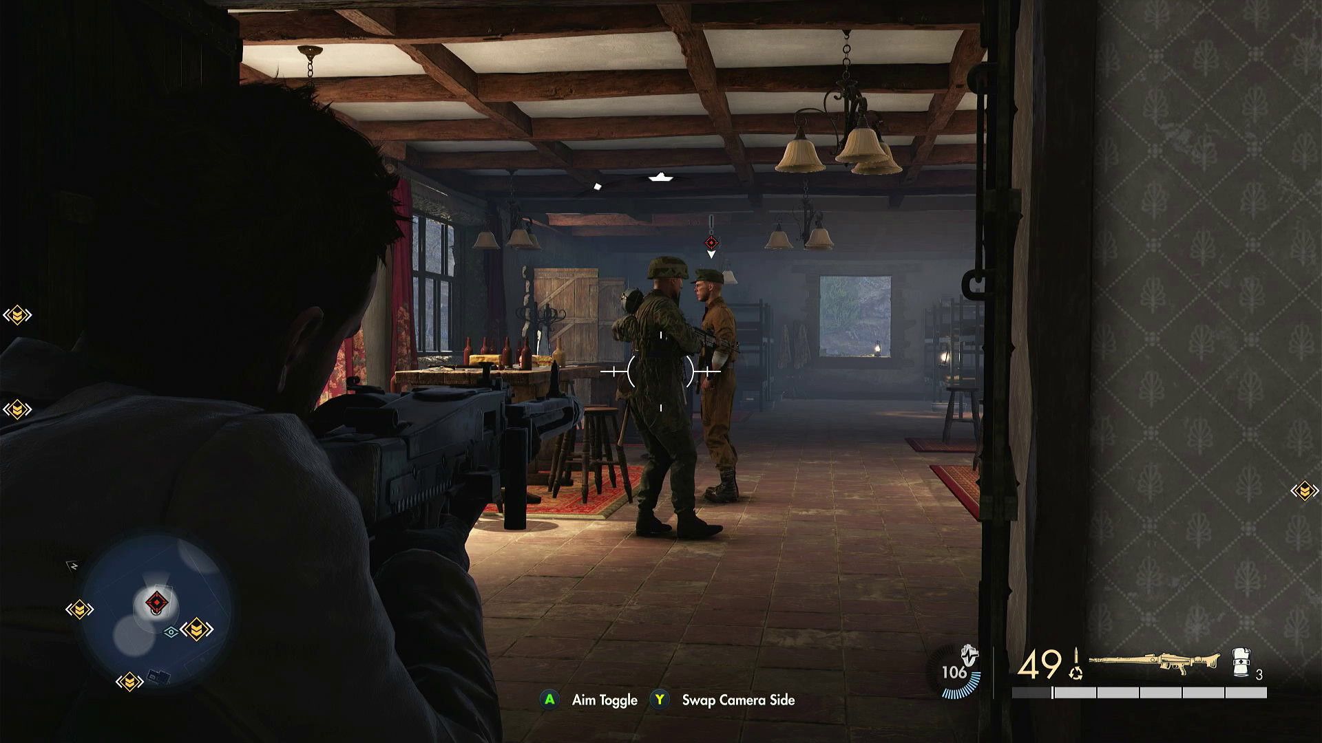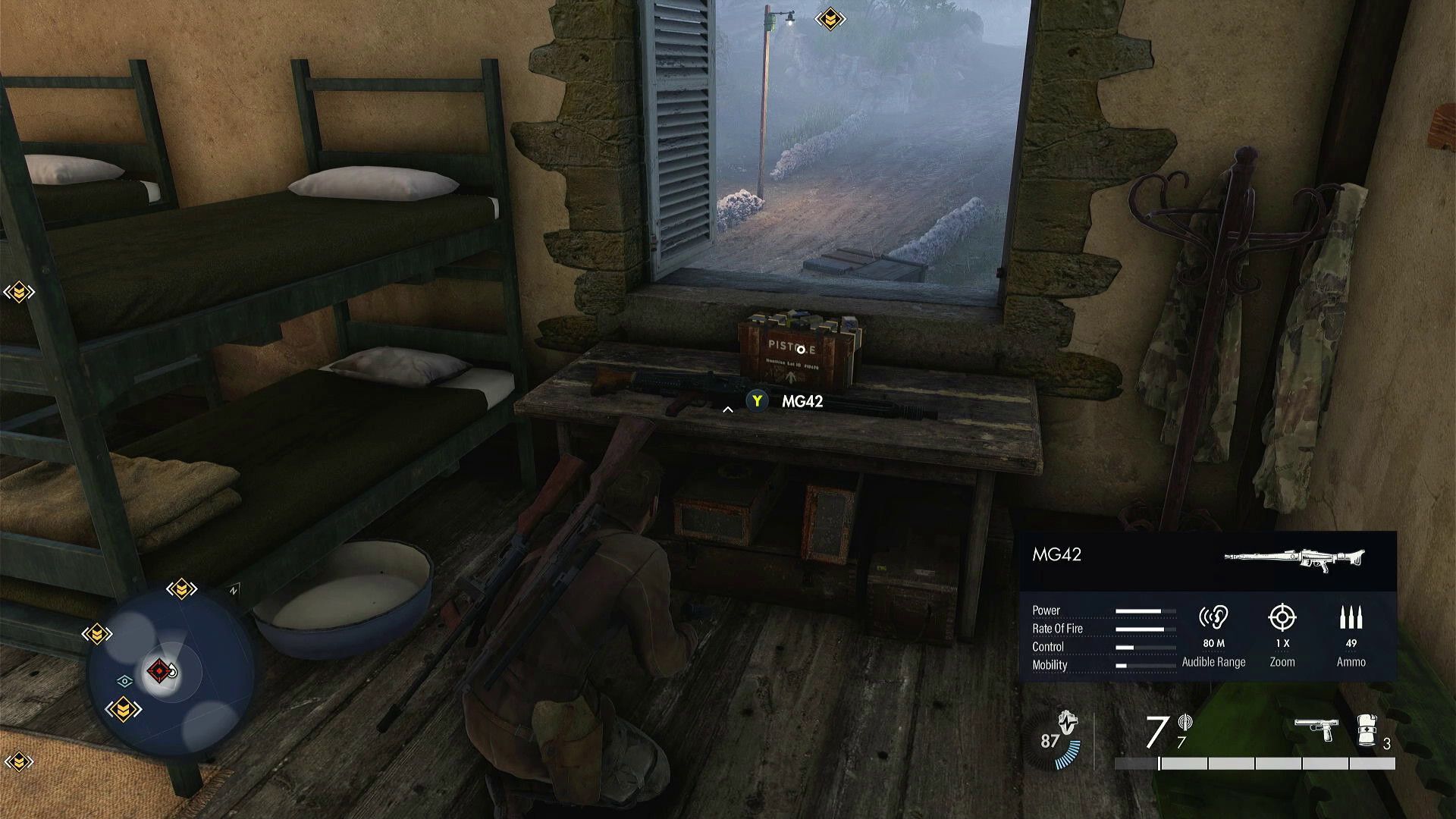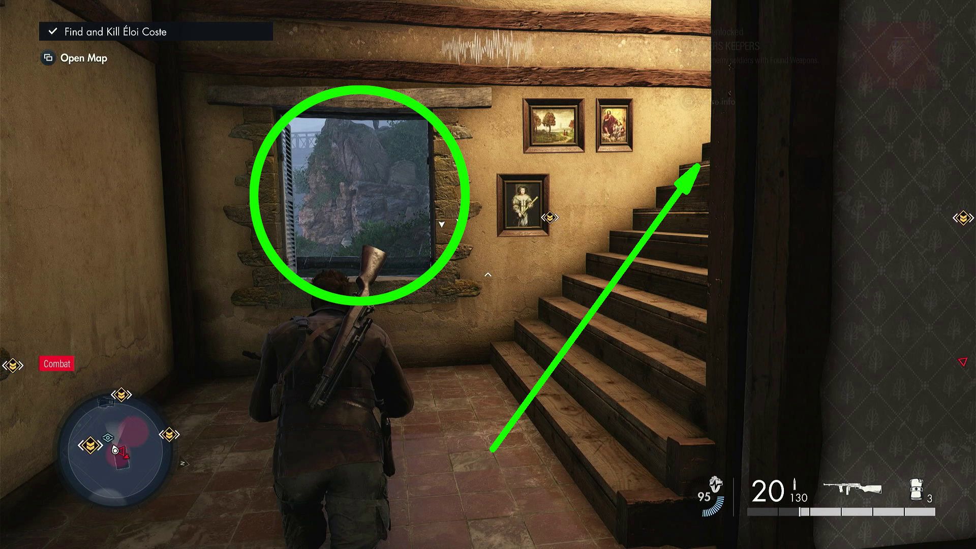 Игроки могут тихо пробраться к MG42, не потревожив Косте и его группу, выбор, который может понравиться тем, кто предпочитает стратегический подход. Для поклонников снайперских игр есть доступная точка входа — открытое окно, расположенное в верхнем левом углу здания. Попав внутрь через это окно, игроки обнаружат лестницу, ведущую в комнату, где хранится оружие.