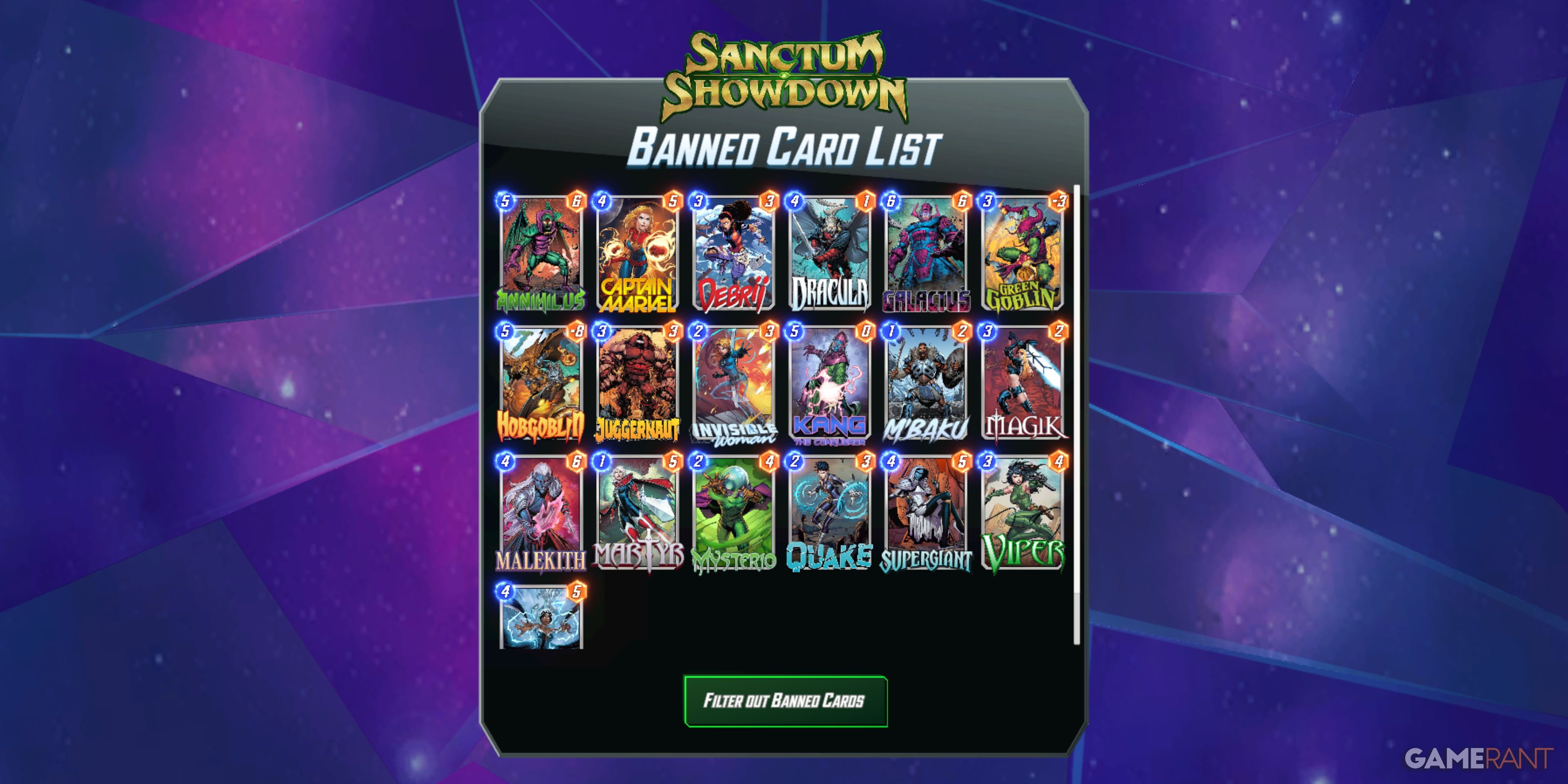 В режиме игры Sanktum Showdown определенные способности карты могут противоречить его правилам, что приведет к их запрету в этом конкретном игровом процессе.