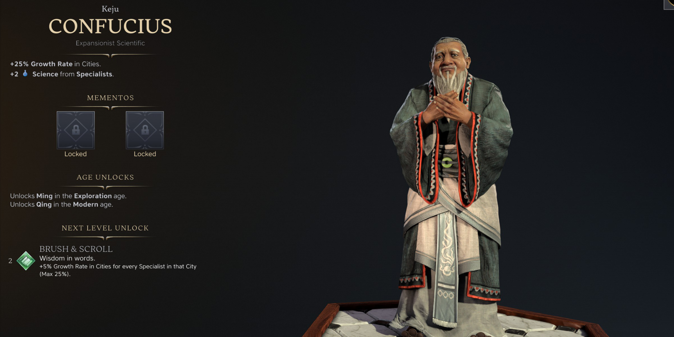 Первоначальный текст предполагает, что изучение истории цивилизаций предлагает большой пул лидеров на выбор, так как со временем было много знаковых фигур. Игроки часами играют за эти исторические фигуры в таких играх, как цивилизация, и оплакивают свое отсутствие из -за их воздействия.)