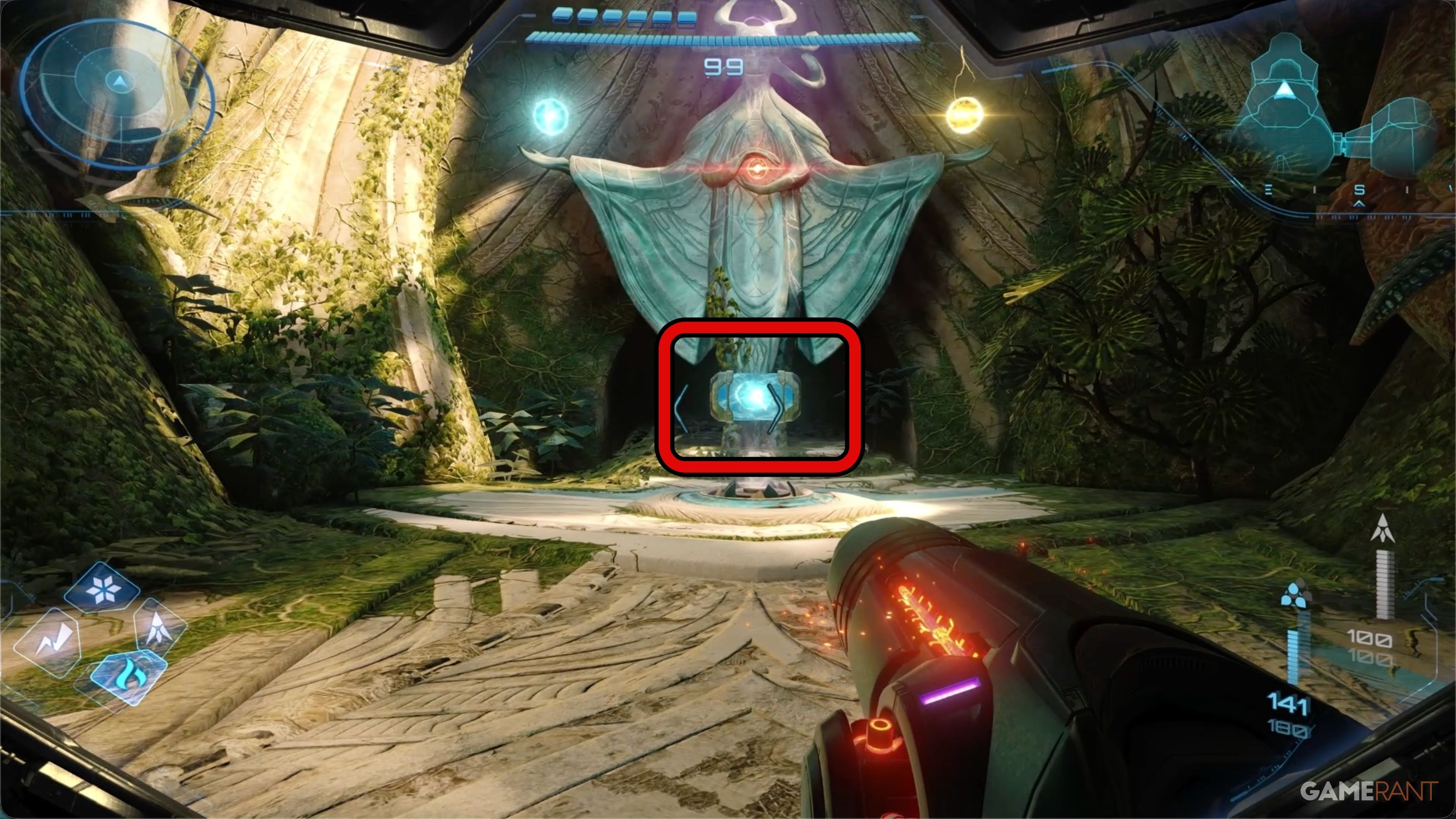 Теперь, когда вы решили все три элементальные головоломки, вернитесь к большой статуе Ламорна, чтобы получить свою финальную награду: Энергетический бак. Он поднимется из земли у основания статуи, завершая головоломку.