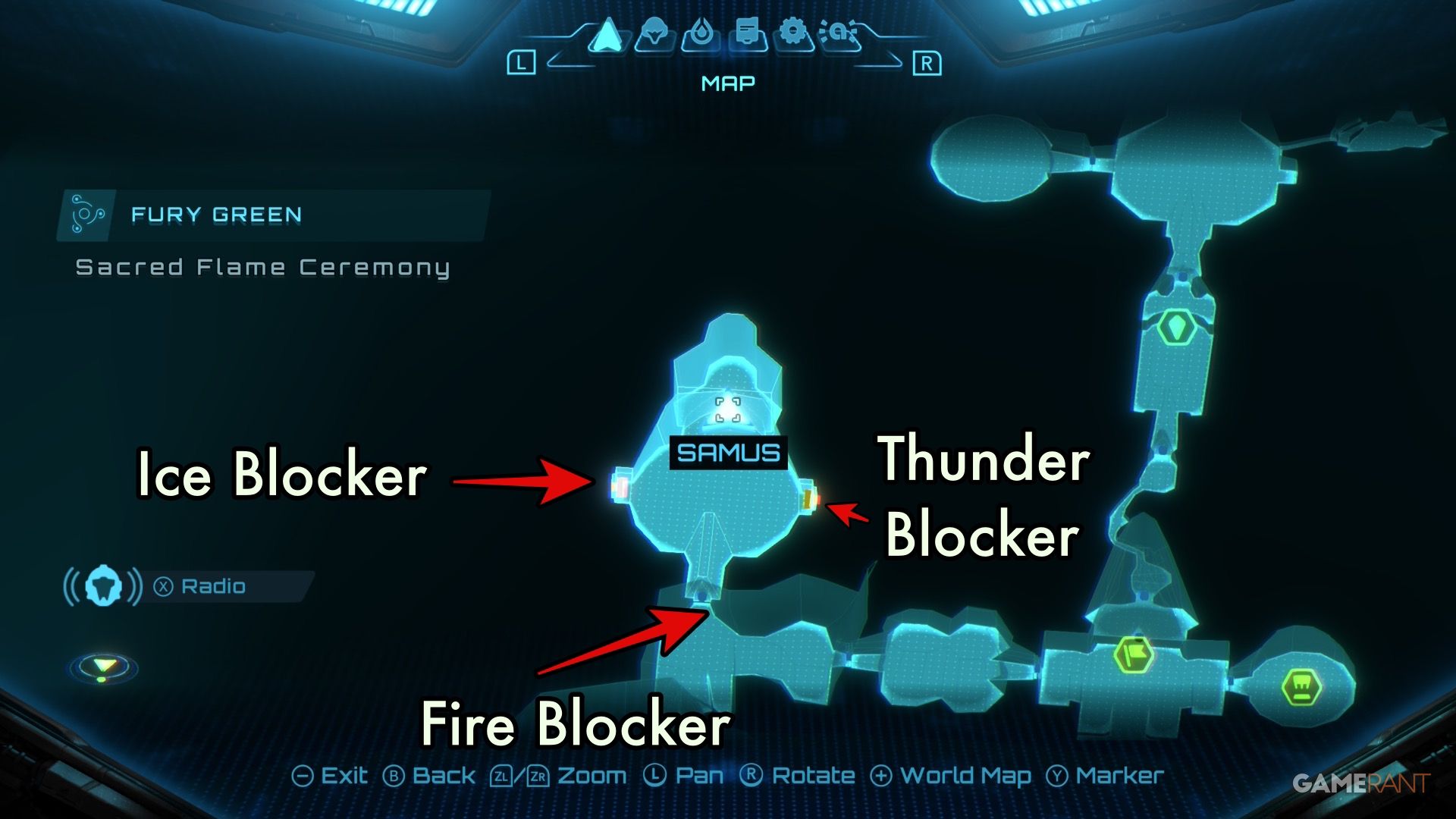 По мере исследования Fury Green, первой области в Metroid Prime 4, вы столкнетесь с дверями, заблокированными Fire Blockers. Для их открытия требуется мощное оружие с высокой теплоотдачей. За одной из этих дверей находится сложная головоломка, которую нельзя решить, пока вы не найдете все три элементарных оружия. Это руководство проведет вас через первую часть головоломки, которая включает в себя удаление начального Fire Blocker, а затем объяснит, как решить полную головоломку, используя Ice Shot и Thunder Shot также.