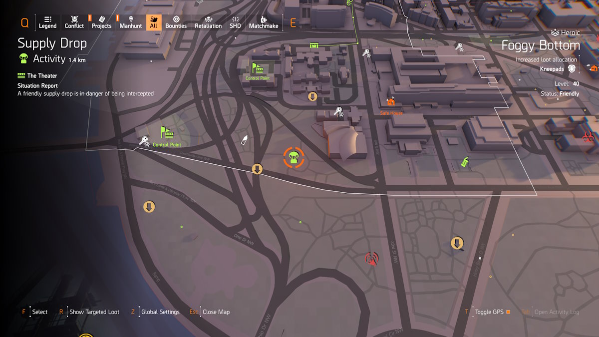 Чтобы решить вторую загадку, вам нужно выполнить активность «Supply Drop» в районе Восточного торгового центра. Ищите на карте зелёный ящик со значком парашюта, чтобы найти его. Эта активность бросает вам вызов – открыть три сундука до прибытия врагов. Если вы сразу его не видите, попробуйте захватить все точки управления в Восточном торговом центре – тогда «Supply Drop» появится случайным образом.