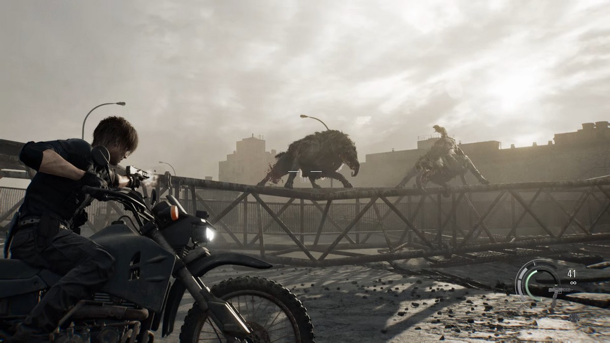 Леон едет на мотоцикле. Проезжайте по шоссе, пока не появится очередная кат-сцена.
