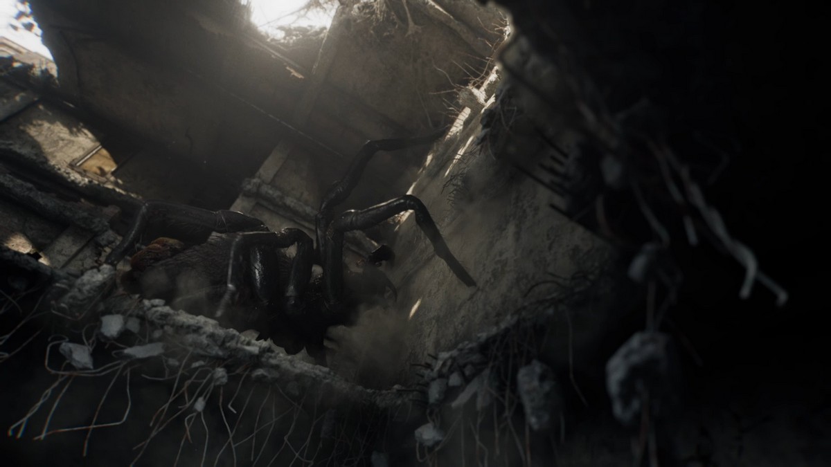 Прорвитесь сквозь барьер, и вы столкнетесь с группой маленьких пауков. Устраните их своим топориком, затем продолжайте движение вперед. Босс-паук попытается помешать вам добраться до балкона, но продолжайте прорываться вперед и взбирайтесь по лестнице, чтобы начать бой.