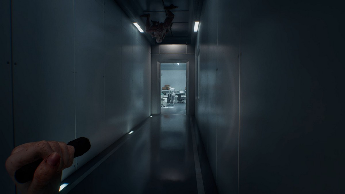 Итак, ты поднимаешься наверх и проходишь через эту дверь, затем идешь по коридору до самого конца. Там всего одна открытая дверь, так что проходи через нее. Ты увидишь Ликера, бродящего возле стеклянного окна, но не волнуйся, он пока тебя не заметил. Просто предупреждаю: эти существа очень чувствительны к звуку, так что будь осторожен!