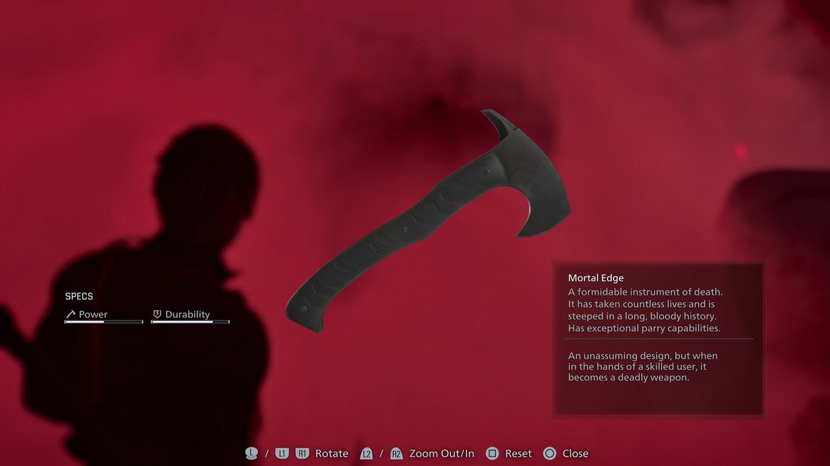 Окей, так я просто продолжал парировать и выполнять эти двухкомбинатные атаки, пока командир наконец не пал. Затем я подобрал топор Mortal Edge с его тела и быстро обчистил всю маленькую комнату. После этого я вернулся через дверь и поднялся по лестнице к тому месту, где начал. Как только я приблизился к следующей двери, начался ролик с Zeno и Grace, а затем еще один ролик с Leon и Grace тоже.