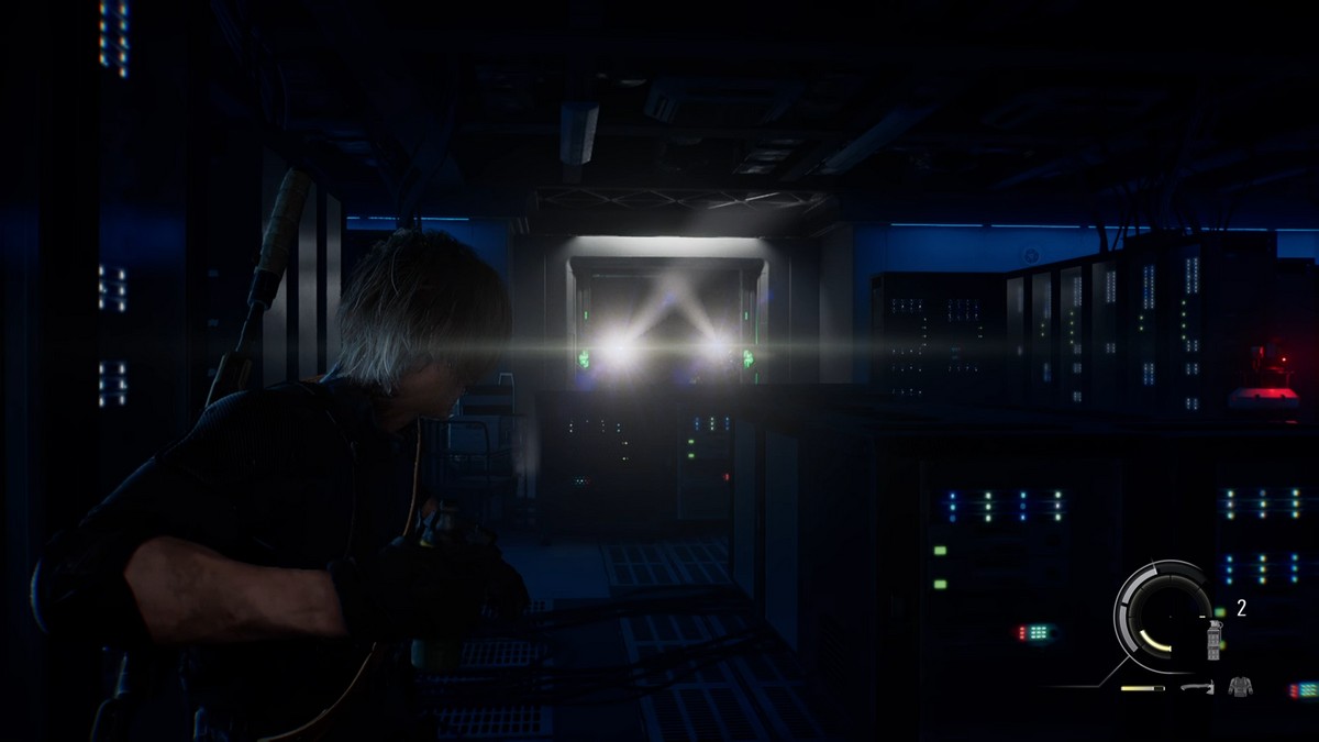 Нажмите на монитор справа, чтобы получить файл, затем нажмите на главный монитор в центре. Это запустит продолжительную кат-сцену. Затем игра покажет вам, что произошло несколько минут назад, уделяя особое внимание Леону и моменту, когда Грейс открыла путь.