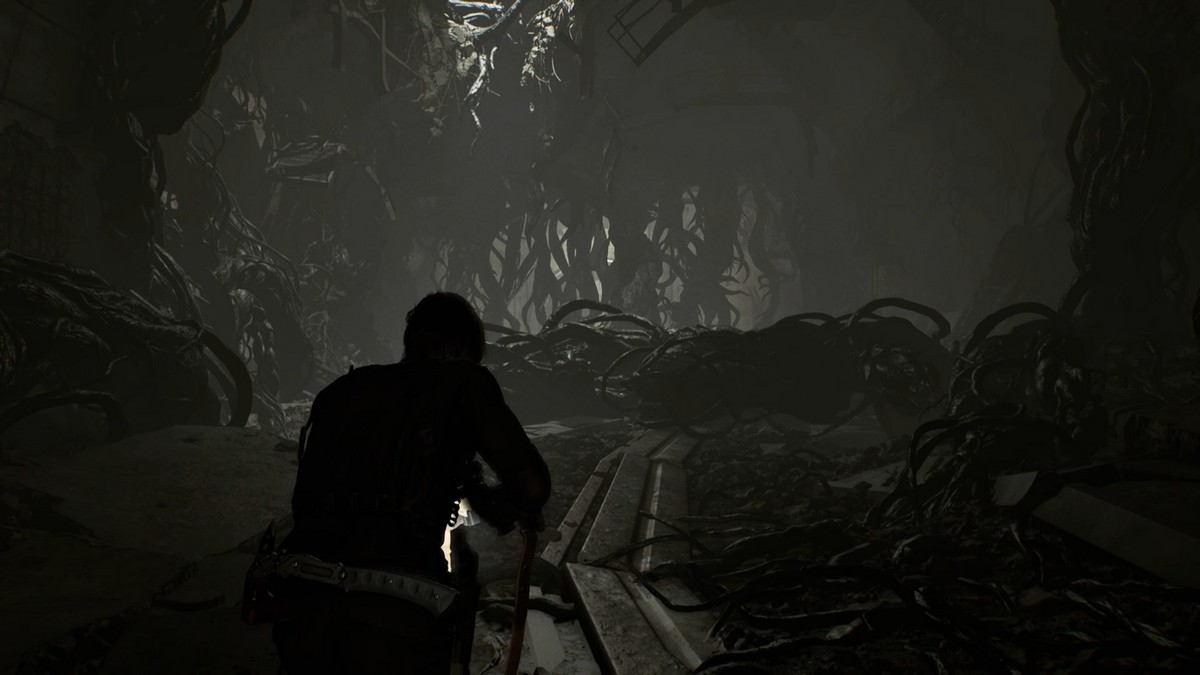 После того, как вы победите растение, проиграет кат-сцена, и вы окажетесь на нижнем уровне. Скользните вправо и прыгните на платформу. Направляйтесь к поезду и соберите все предметы, которые сможете найти, включая Scrap возле сидений. Бегите к следующему вагону и возьмите зелёное растение возле сиденья. Прыгните вниз на другую сторону, затем присядьте, чтобы пролезть под столбом. Откройте контейнер слева, чтобы получить больше припасов, а затем используйте веревку, чтобы спуститься вниз во тьму.