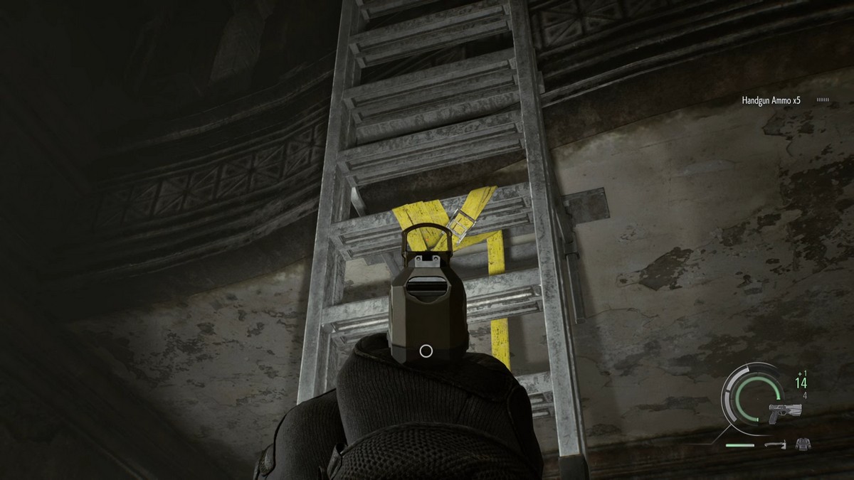 Поверните налево и идите прямо в следующую комнату. Выстрелите в желтую ленту, чтобы опустить лестницу, затем поднимитесь по ней. Продолжайте идти прямо по коридору до комнаты S.T.A.R.S.. Там вы найдете несколько улик, включая сейф, который был из офиса, и файлы, принадлежащие Барри.