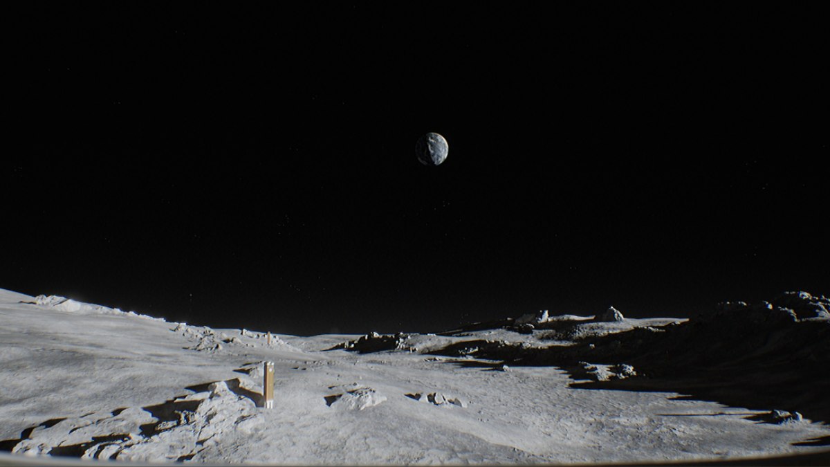 Идите по поверхности луны и направляйтесь к вышке сигнала прямо перед вами.