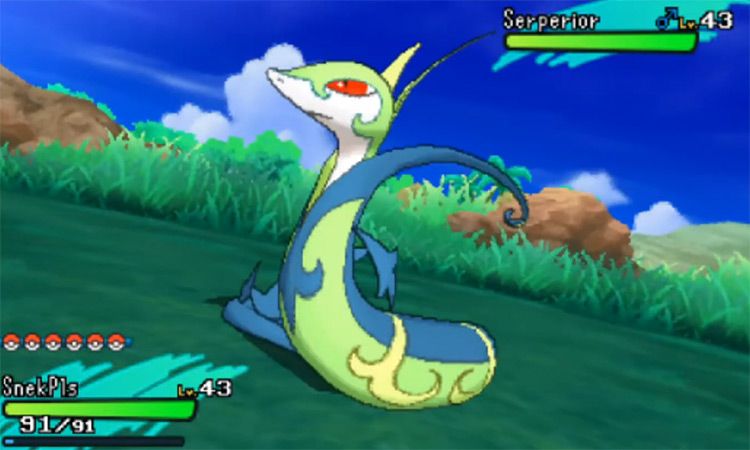| Pokedex Entry | Она выкладывается только против сильных противников, которых не пугает взгляд благородных глаз Серпериора. |