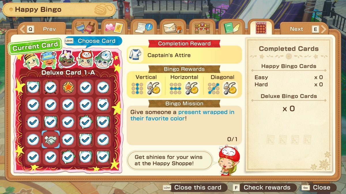 Happy Bingo — это функция в Story of Seasons: Grand Bazaar, которая помогает добавить структуру в вашу ежедневную и еженедельную игру. Хотя вы можете получать полезные награды за выполнение карточек бинго, многие игроки больше всего наслаждаются возможностью разблокировать стильные и уникальные наряды.