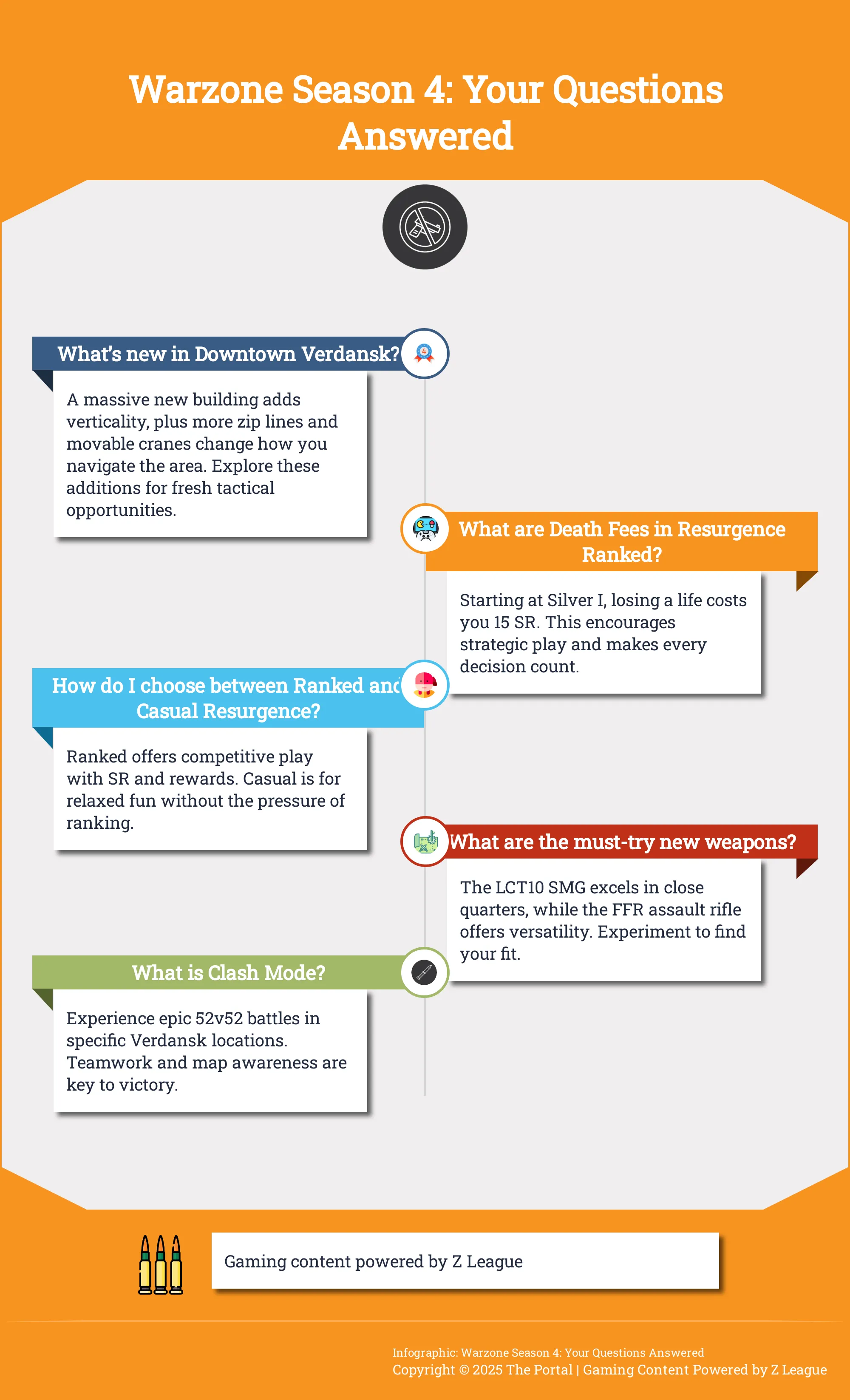 Как страстный энтузиаст, должен признать, что одна тема вызвала большой ажиотаж в последнее время — это измененные механики в Ranked Resurgence, особенно система ‘Death Fees’. Идея терять очки ранга каждый раз, когда я выбываю (после достижения Серебряного I и выше) определенно заставила меня пересмотреть мои игровые стратегии. Это действительно вводит интересную динамику риск против вознаграждения. Помимо рейтингового режима, существует ощутимое волнение по поводу того, что 4-й сезон поднимает уровень конкурентной сцены в Warzone, что звучит для меня как песня, если я стремлюсь к вершинам рейтинга и демонстрирую свои навыки.