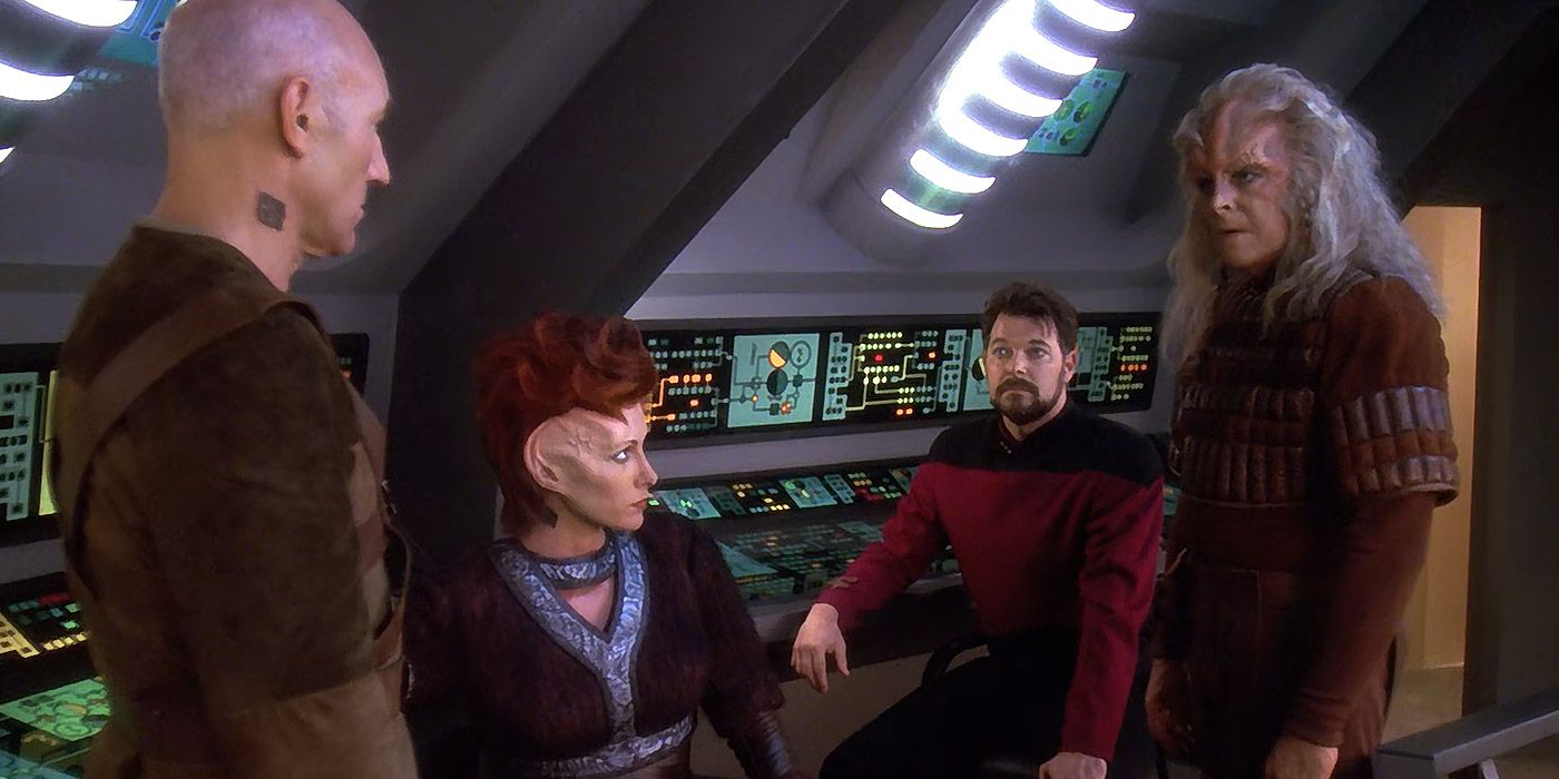Звёздный путь: Следующее поколение установило высокую планку для двухчастных эпизодов впечатляющим эпизодом ‘Лучшее из обеих миров’, и хотя эпизод ‘Гамбита’ не достигает таких высот, он все равно предлагает приятный отход. В этом эпизоде командир Уильям Рикер (Джонатан Фрейкс) и экипаж Энтерпрайз-D отправляются на миссию по поиску капитана Пикара, но получают сообщение о его смерти — однако позже находят его в баре.
