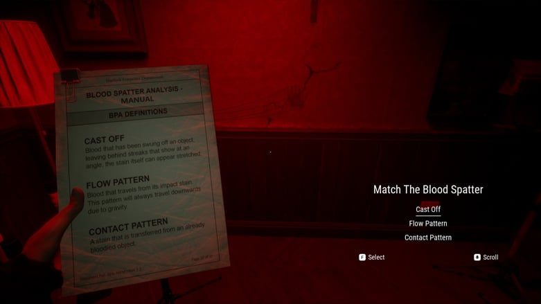 Я очень ждал эту функцию, так как всегда был очарован криминалистикой, в частности анализом разбрызгивания крови. В игре вы используете ультрафиолетовый свет, чтобы найти следы крови вокруг дома, а затем определить, откуда взялся каждый из них.
