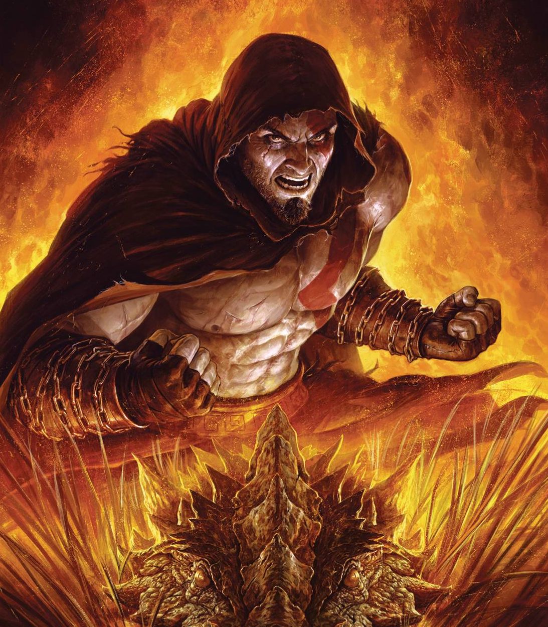 Под публикацией Dark Horse Comics, написанной Крисом Роберсоном и с иллюстрациями Тони Паркера и Дэйва Рапозы, выходит серия комиксов под названием «Бог войны: падший бог» служит в качестве четырех выпусков, связанных с «God of War» и «God of War Ragnarok» 2018 года. История разворачивается после истребления греческого пантеона, как показано в «God of War 3», после попытки Призрака Спарты избавиться от Клинок Хаоса и сбежать из Греции, отправившись в Древний Египет. В течение нескольких месяцев Кратос пересекал бесплодные ландшафты Египта, пока снова не встретил призрак Афины. Она убеждала его столкнуться со своим греческим происхождением и судьбой, но Кратос сопротивлялся. Вместо этого он глубже погрузился в египетские исследования, пока не нашел деревню, которая приветствовала его как своего спасителя.