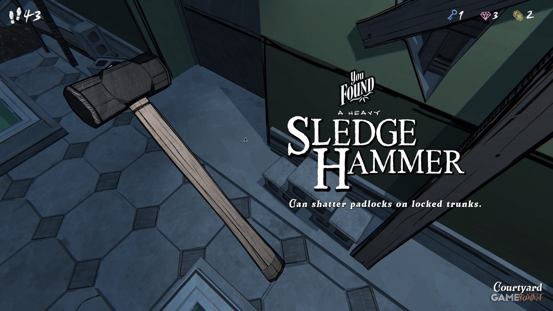 К счастью, у вас есть альтернативное решение для открытия любых запертых сундуков. Иногда в таких местах, как гардеробные и зеленые комнаты, можно найти следжхаммер. Или же вы можете приобрести Следжхаммер в комиссариате, если он имеется в наличии и вам хватает золотых монет. В отличие от ключей, следжхаммер остается у вас после использования. Это значит, что каждый раз, когда во время исследования вы встречаете очередной запертый сундук, вы можете продолжать использовать тот же следжхаммер. Так вы сможете сохранить ключи для более важных случаев.