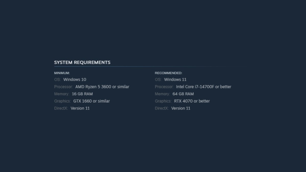 Разница в требуемых компьютерных компонентах довольно велика, что немного странно. GTX 1660 — это устаревшая видеокарта 2019 года, и даже тогда она не была такой мощной, как предыдущее поколение. Это означает, что минимальные и рекомендуемые системные требования отличаются примерно на три поколения по производительности.