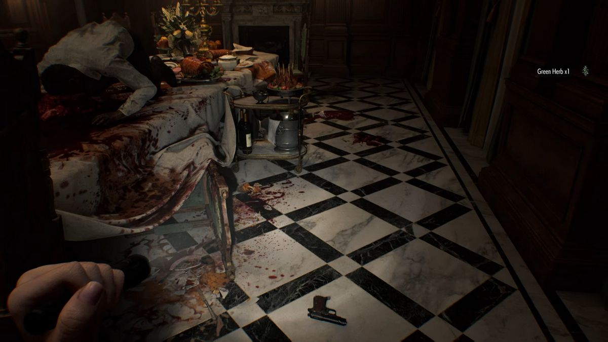 Спасаясь от зомби вместе с Грейс и без оружия, вы обнаруживаете что-то на полу возле обеденного стола.