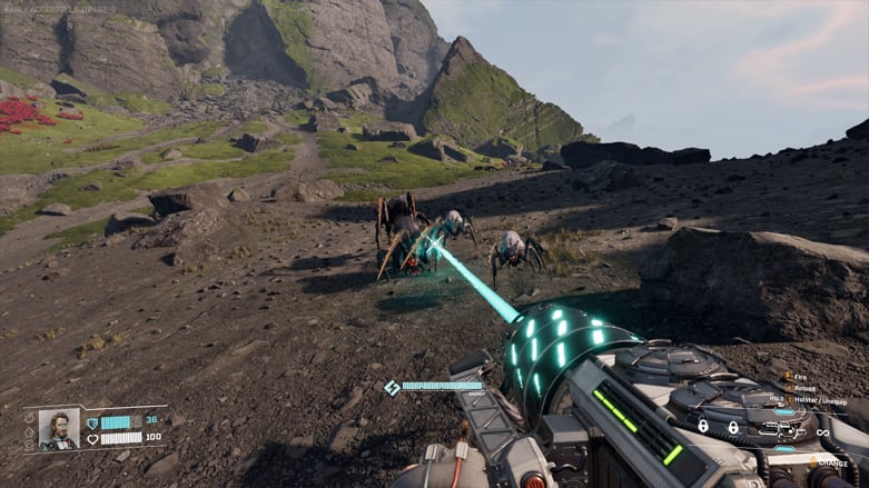 Стрельба в игре надёжная, хотя и не революционная. Оружие ощущается мощным и обеспечивает удовлетворительную обратную связь при попадании по врагам. Хотя передвижение не плохое, оно не достигает уровня динамичных шутеров, таких как Apex Legends или Borderlands. Оно вполне подходит для того, что вам нужно делать — зачищать области, заполненные жуками — и не разочарует вас. Кроме того, тот факт, что эти жуки взрываются в слизь, делает их уничтожение весьма приятным.