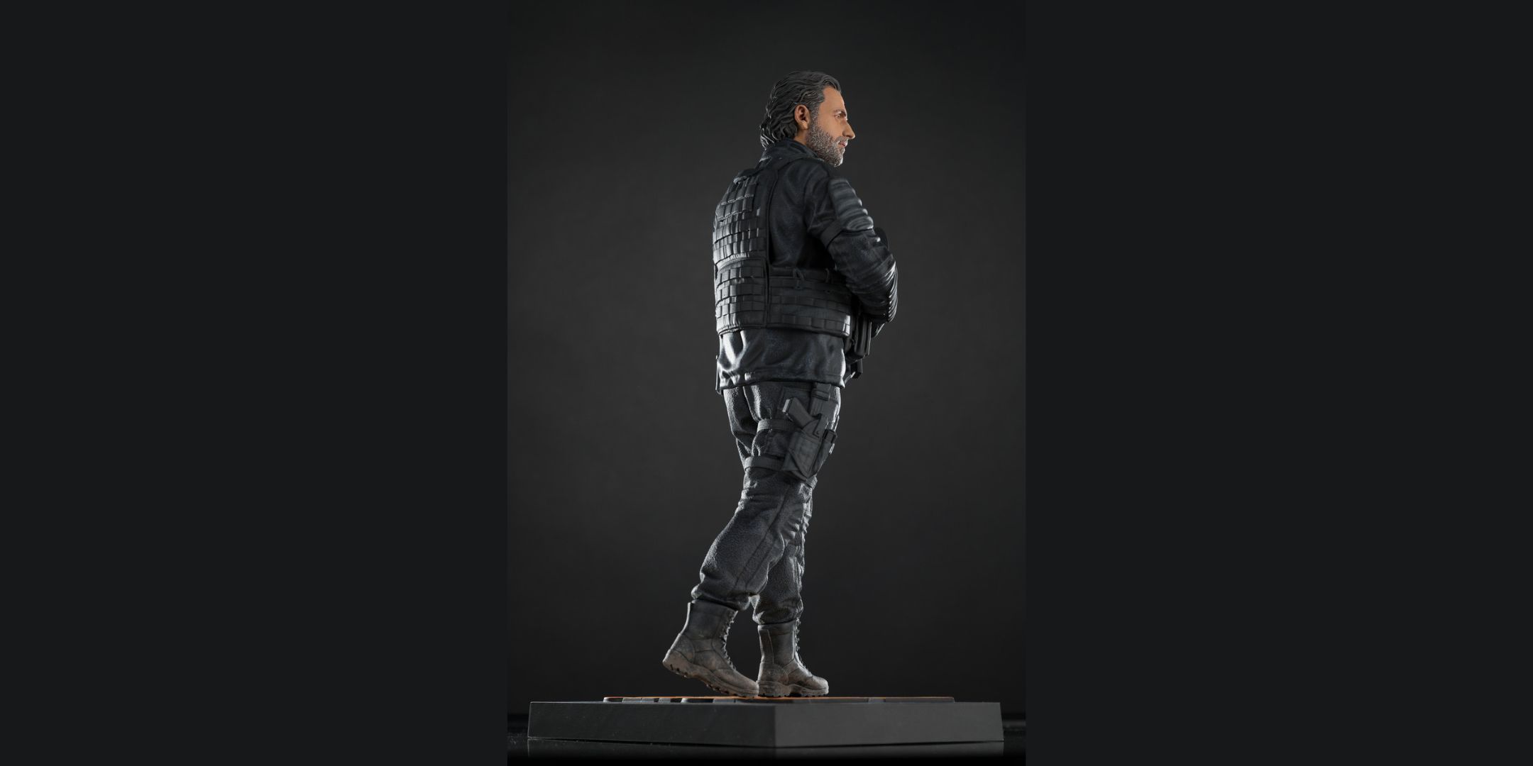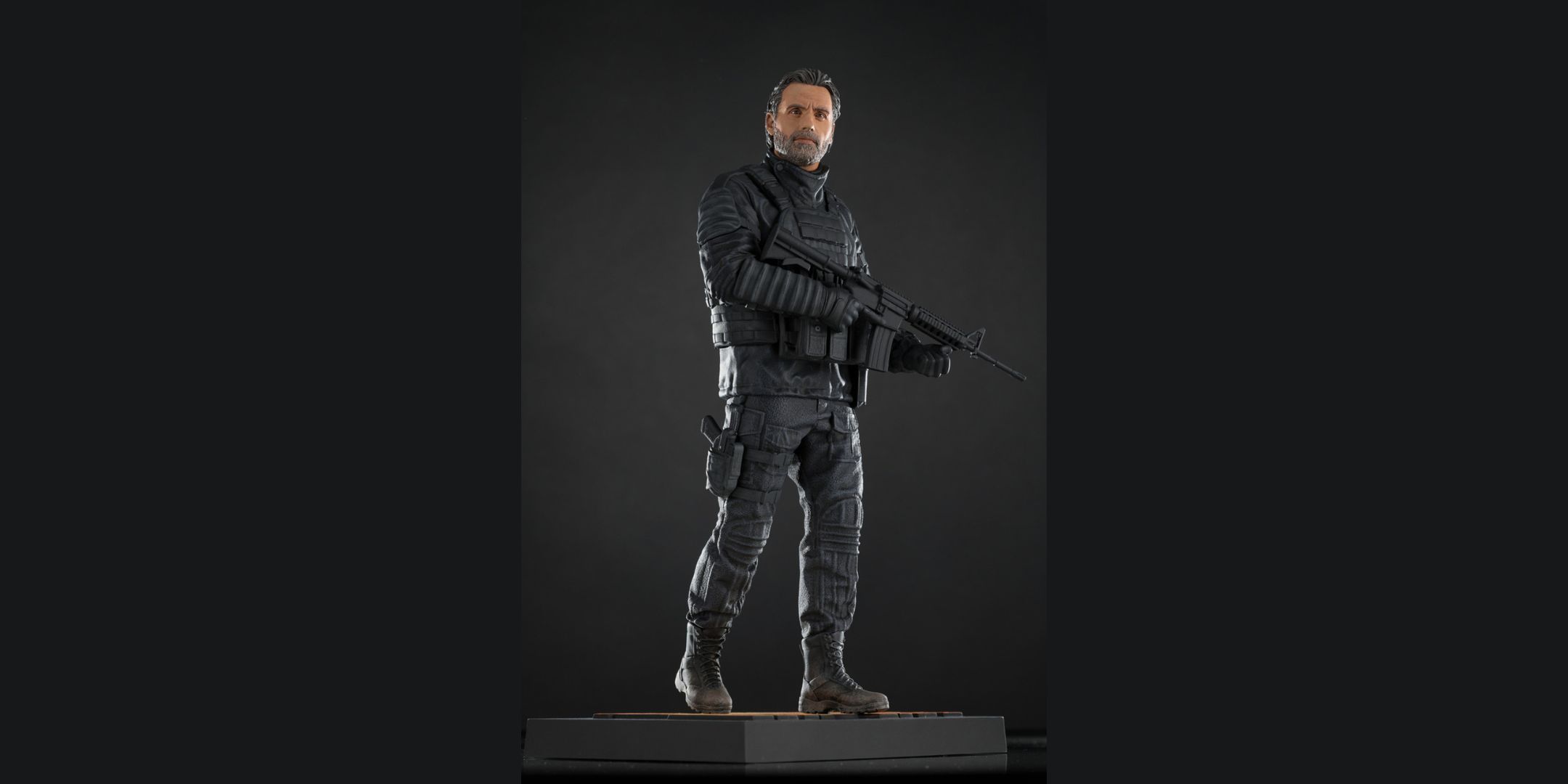 «Увлекательным аспектом является то, что голову Рика можно менять местами, чтобы изобразить его в полном шлеме CRM или обнажить грубое, покрытое шрамами в боях лицо Эндрю Линкольна. Примечательно, что протез руки (спойлер: Рик теряет его в спин-оффе) также были включены в дизайн, как и типичный урон от выжившего, который так долго сражался с зомби.