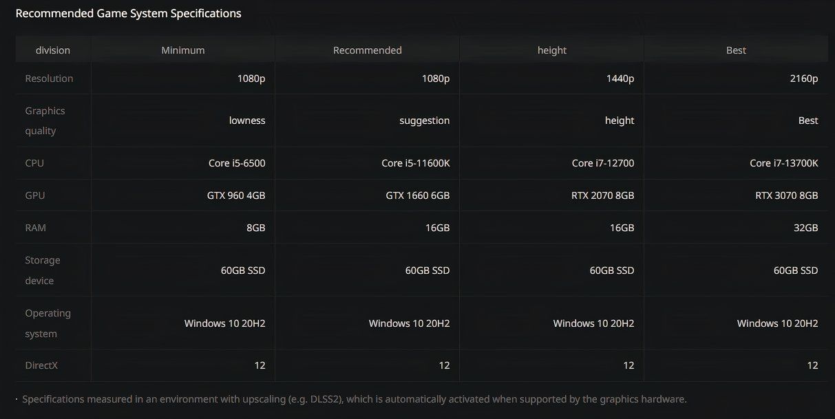 Более конкретный список требований к оборудованию можно найти на корейском веб-сайте (который был переведен Google) (Примечание: «Высота» в данном контексте неверна, ее следует понимать как «Высокие характеристики»).