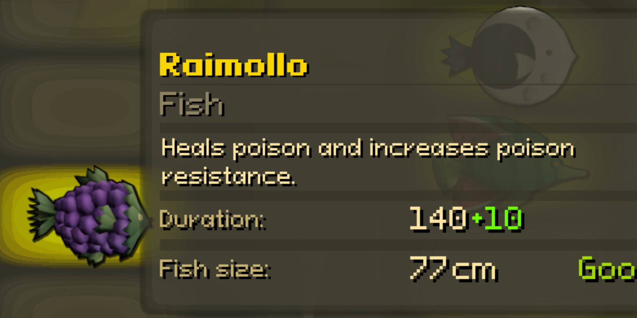 В течение примерно 4 минут эта рыба постепенно восстанавливает здоровье игрока. Это может быть особенно полезным, прежде чем боссы сражаются, поскольку незначительные травмы, которые игроки предпочитают не растрачивать другие исцеляющие ресурсы, естественно исцеляются со временем.