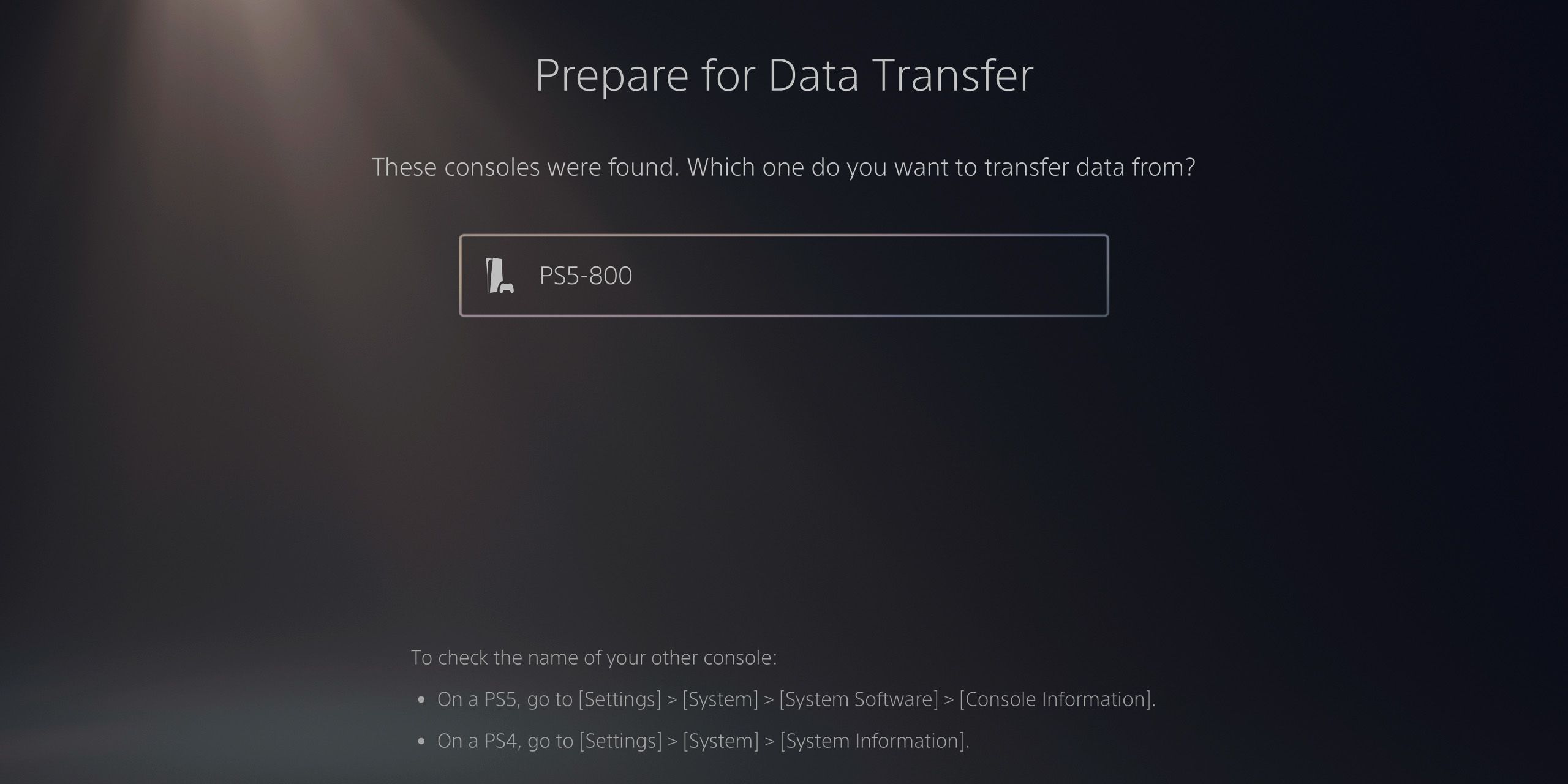 3. Выберите PS5, а затем выберите, какие данные следует передать.