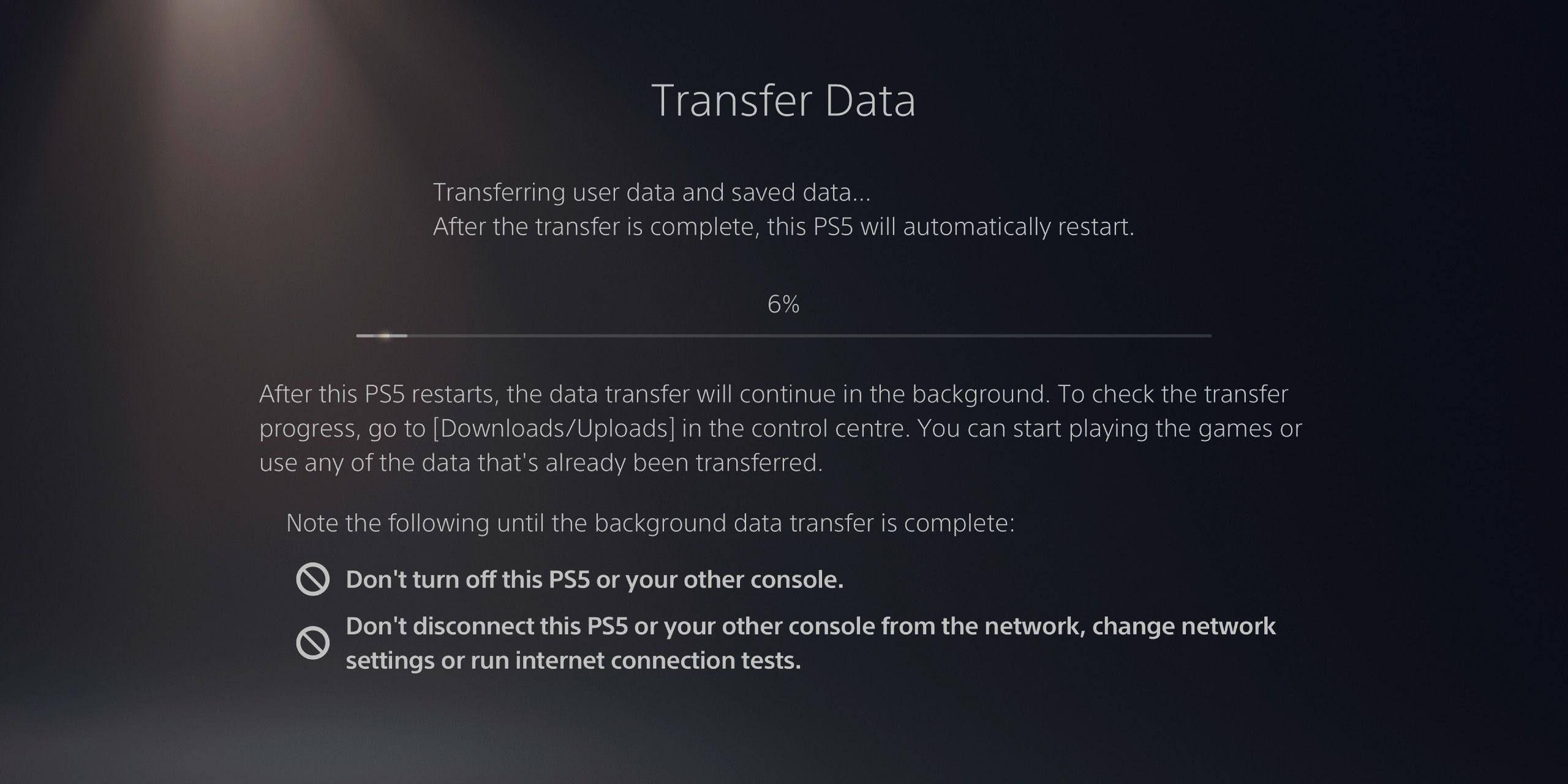 Во время процесса инициализации игрокам следует ожидать задержки, поскольку важная информация будет перемещена. После этого они смогут использовать PS5 Pro так же, как и раньше, пока остальные игры и менее важные данные завершат передачу в фоновом режиме. Важно, чтобы обе консоли были включены или находились в режиме покоя с активным подключением к Интернету до тех пор, пока передача не будет полностью завершена. Игроки могут отслеживать ход передачи в любое время через меню «Загрузки» на Pro.