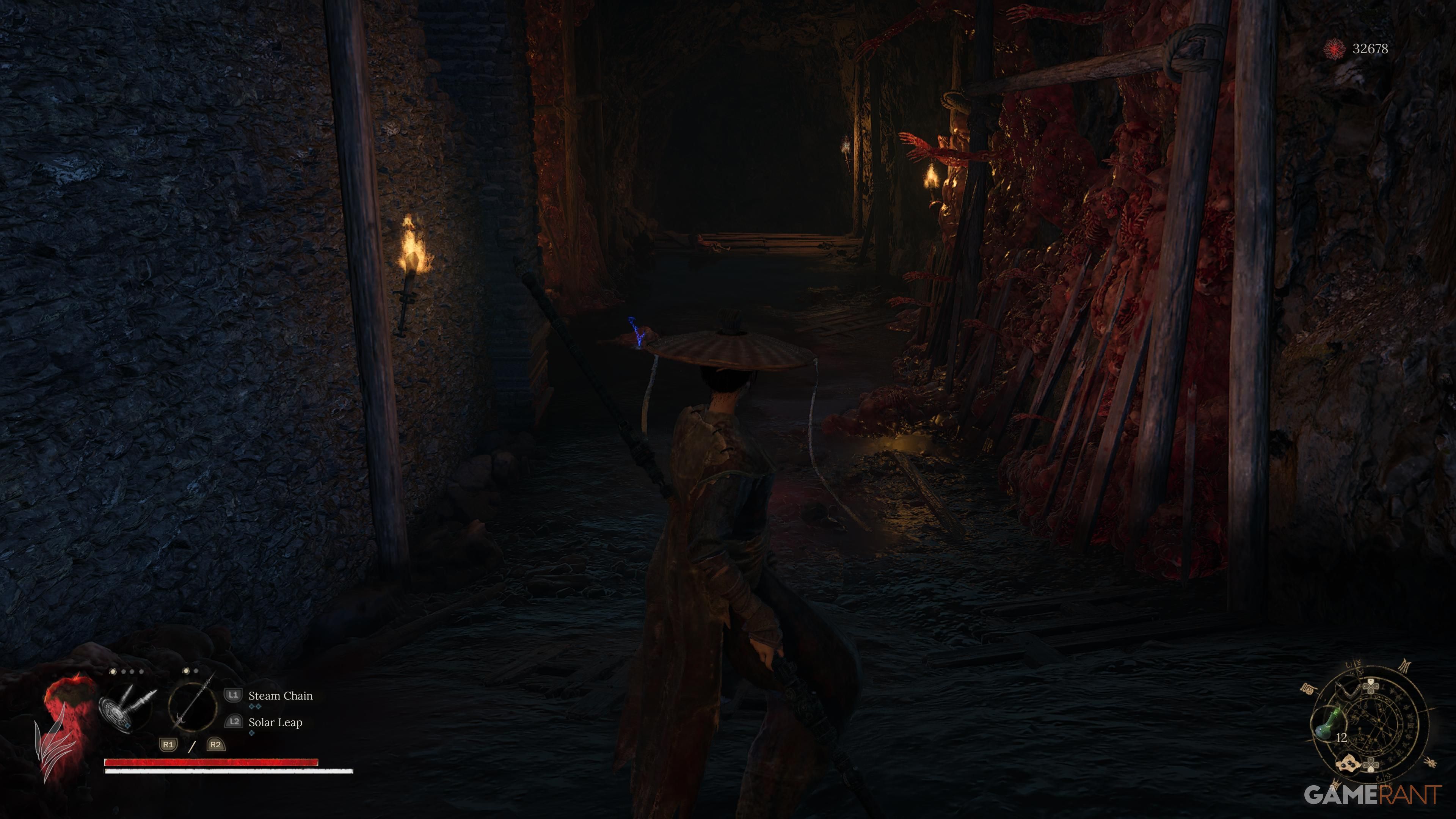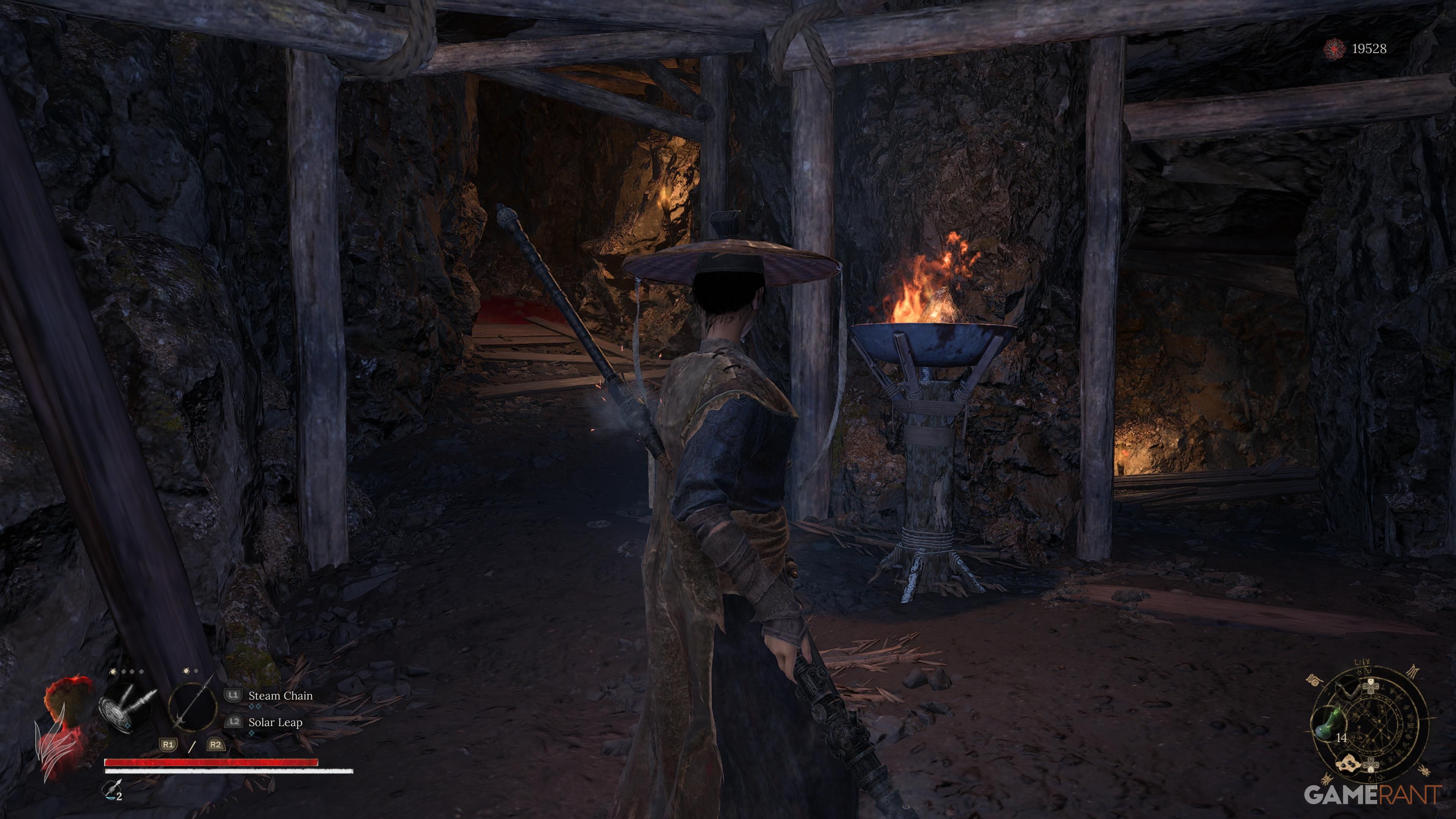 Возвращайтесь к двери, через которую вы уже проходили ранее, и исследуйте маршрут, из которого появился враг-тюремщик. Следуйте по этому пути вниз, сражаясь с врагами, появляющимися на вашем пути, пока не достигнете моста. Не идите сразу на мост; вместо этого посмотрите направо и найдёте лифт, ведущий обратно к святилищу входа в шахту. Используйте его для создания быстрого маршрута возврата, если погибнете во время предстоящего боя с боссом. Когда будете готовы, переходите через мост, чтобы вступить в бой.