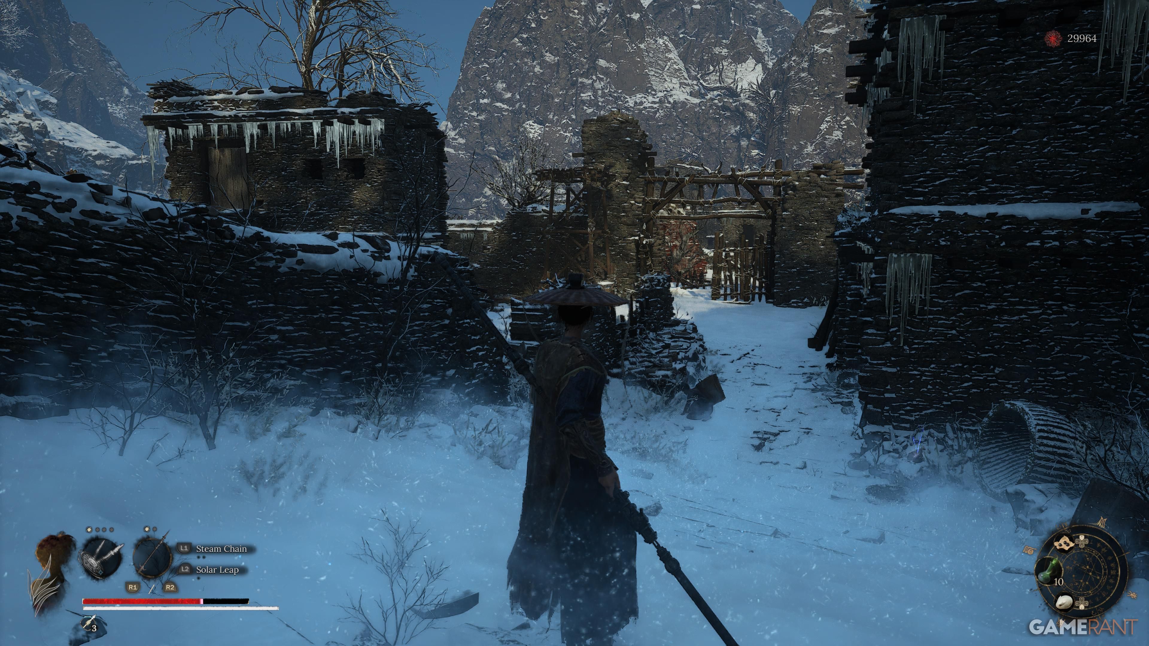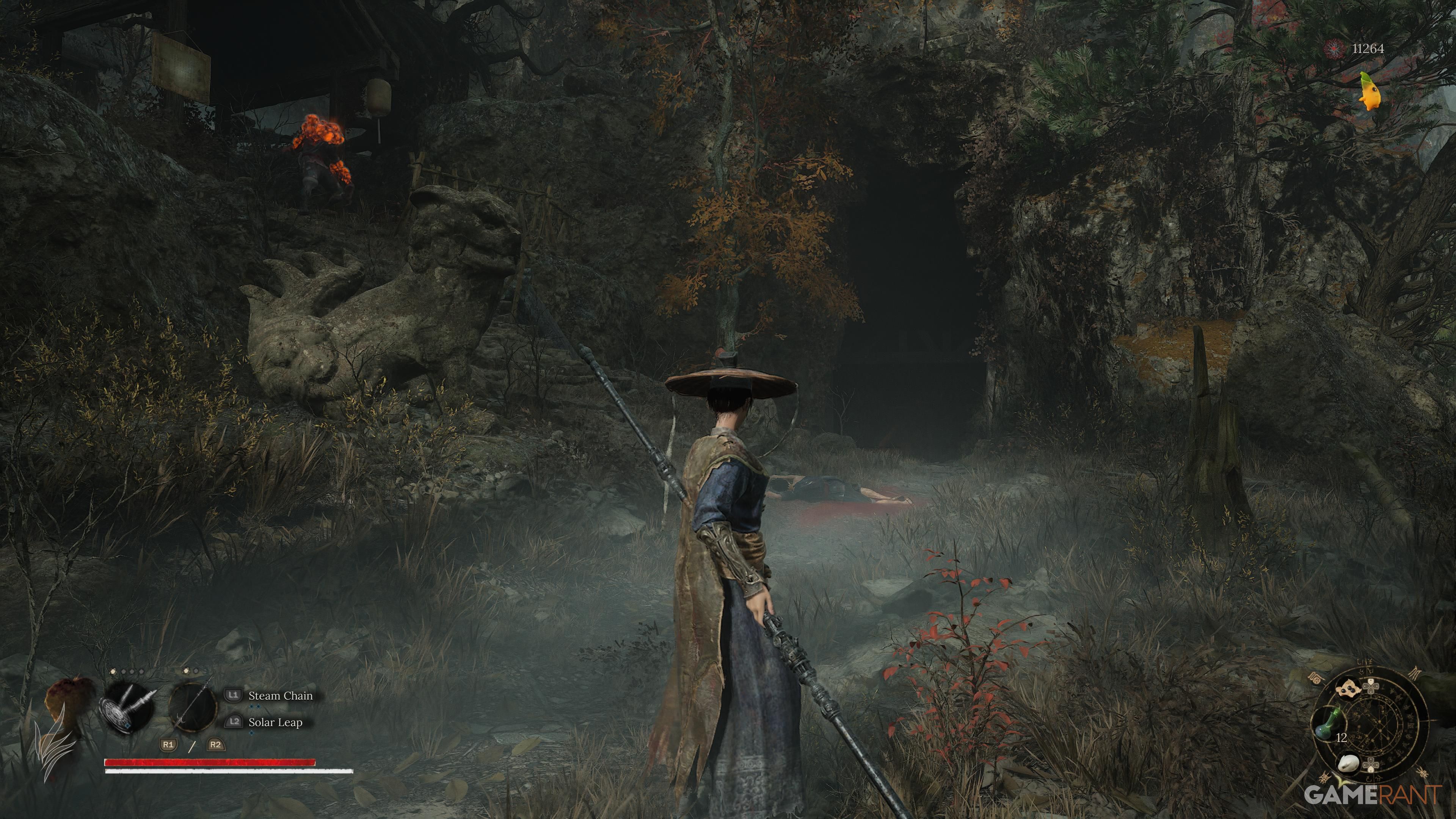 От святилища Хилсвотч в Облакорейте сверните влево и поднимайтесь на холм. Не идите прямо, так как это приведет вас к горе Чжэньву, региону, который доступен позже в игре. Вместо этого поднимитесь по лестнице слева от вас и следуйте по тропинке справа. Продолжайте двигаться вперед, игнорируя все пути слева, поскольку они ведут к локации задания Служанки в Хилсвотче (если хотите выполнить этот квест, можете сделать небольшой крюк; иначе продолжайте движение прямо).