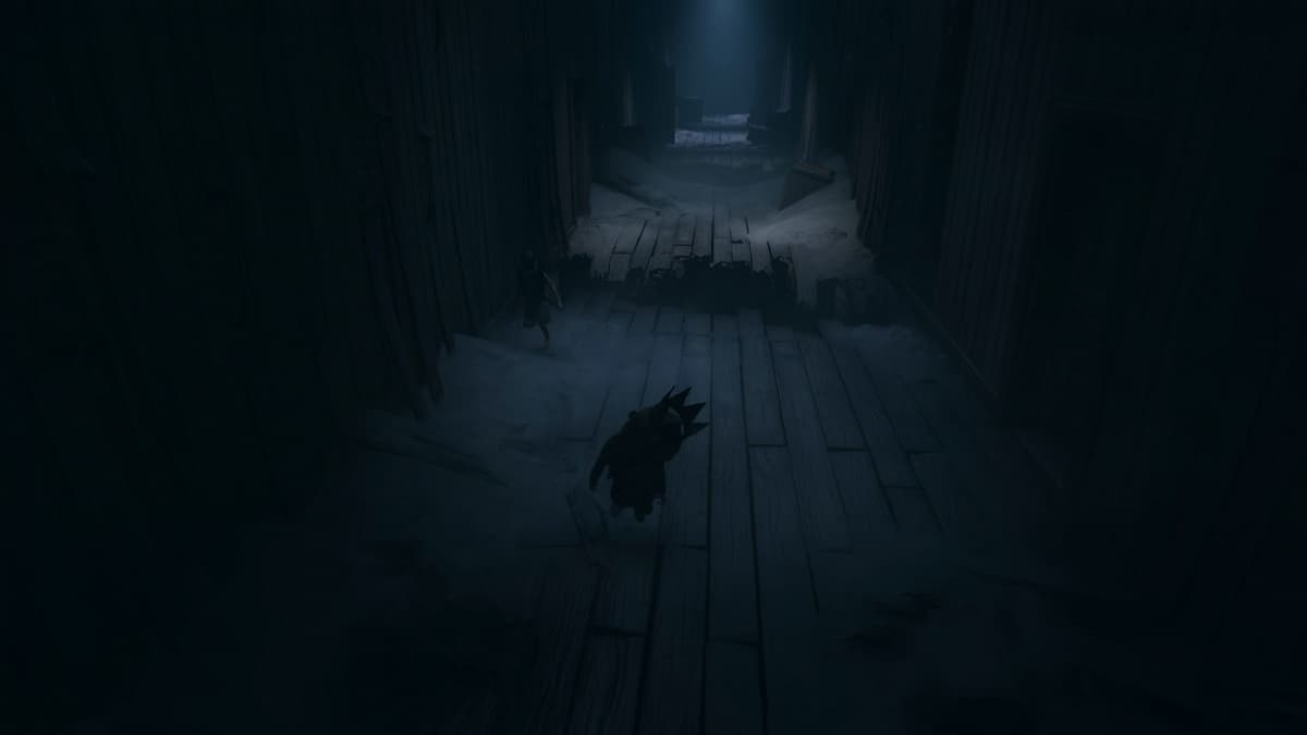 Как только вы войдёте внутрь, вы заметите маленькое существо с ведром, быстро выбегающее из нижнего левого угла экрана.