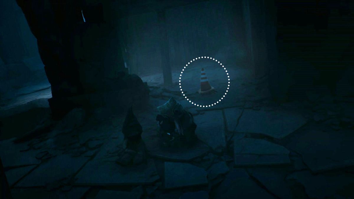 Окей, значит, как только я схватил монтировку из кинотеатра, мне нужно было вернуться к тому переулку. Чтобы туда добраться, я прошёл через разрушенное здание справа от главной площади. И послушайте – там стоял дорожный конус… просто так! Это было немного странно, но я знал, что мне нужно идти туда дальше.