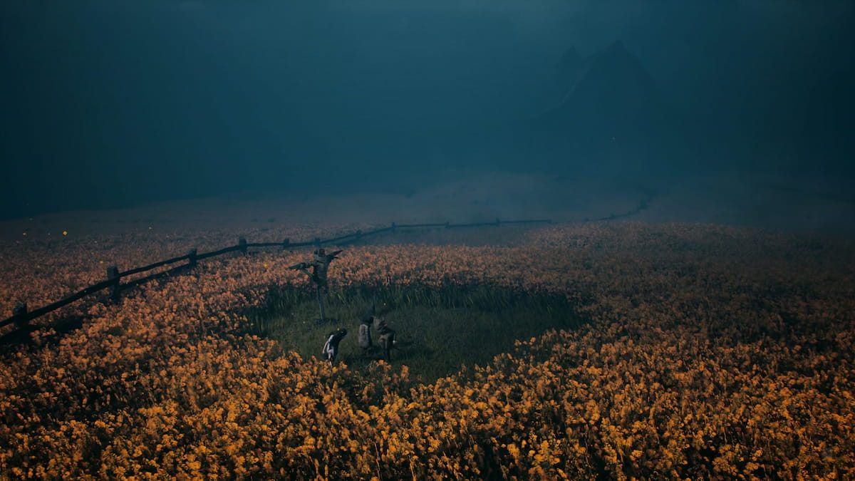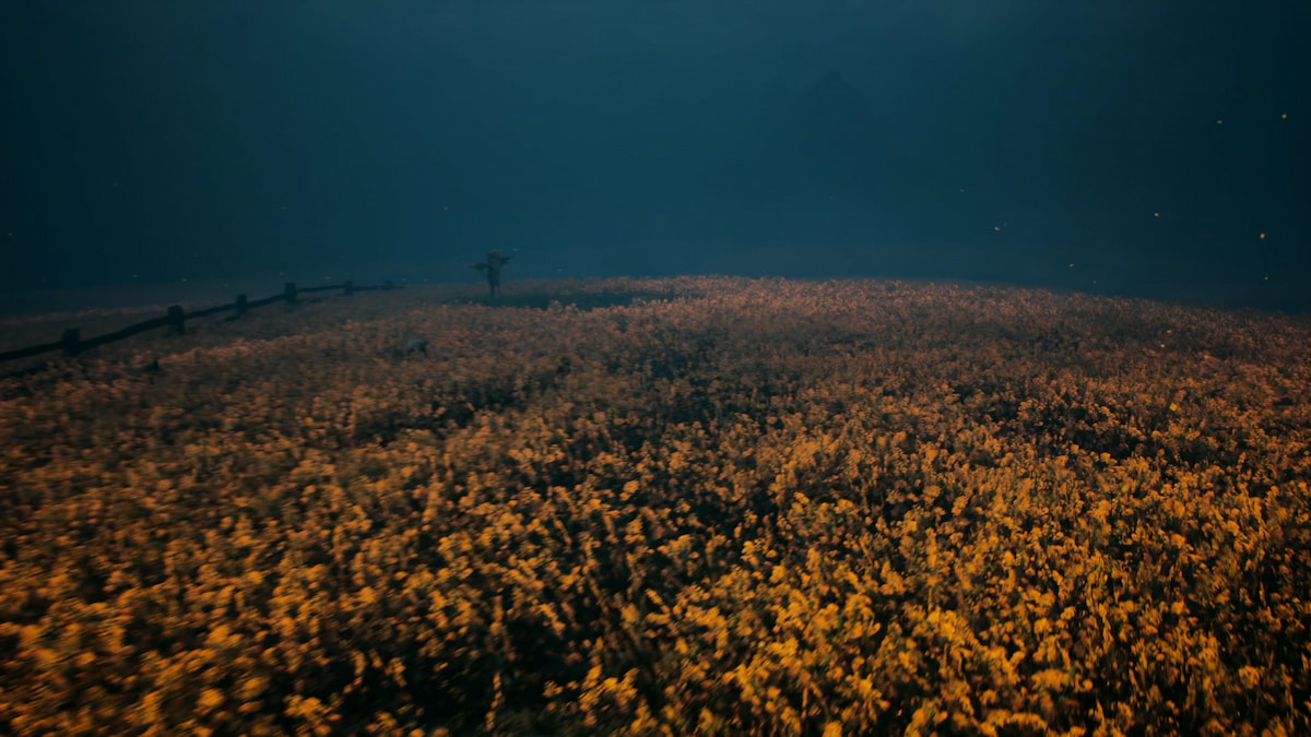 Здесь, в цветочных полях, продвигайтесь к крайнему левому краю, пока не заметите пугало.