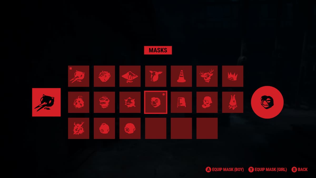 Вы можете менять маски во время игрового процесса, приостановив игру и перейдя в меню ‘Masks’. Там выберите маску, которую хотите использовать как для себя, так и для своего партнера.