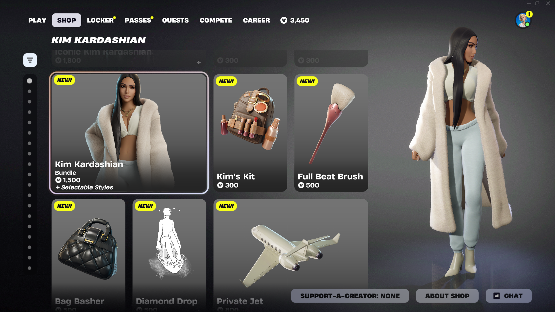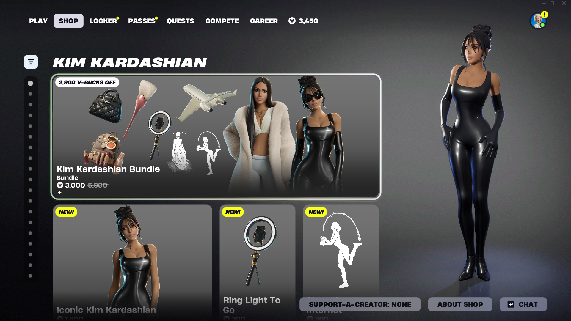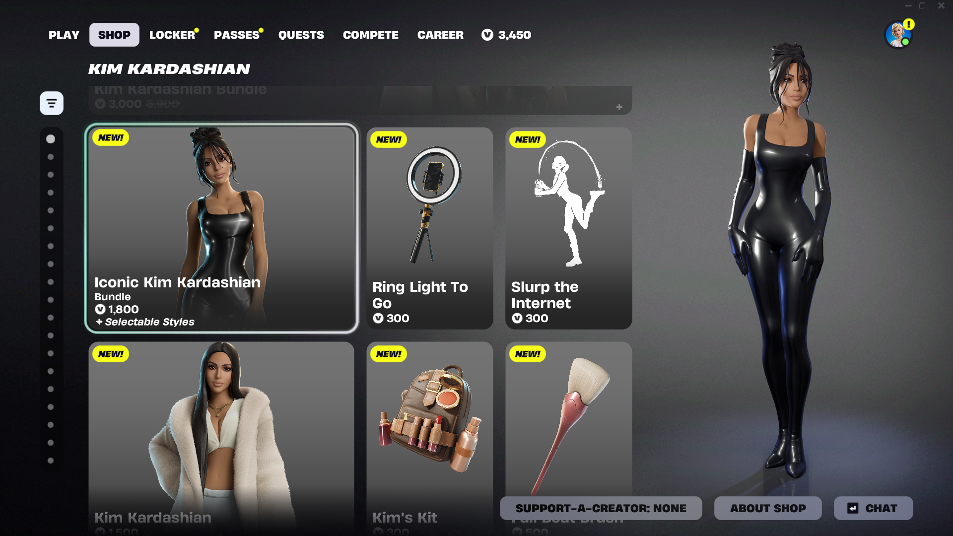 Fortnite — Витрина предметов Ким Кардашьян в магазине.