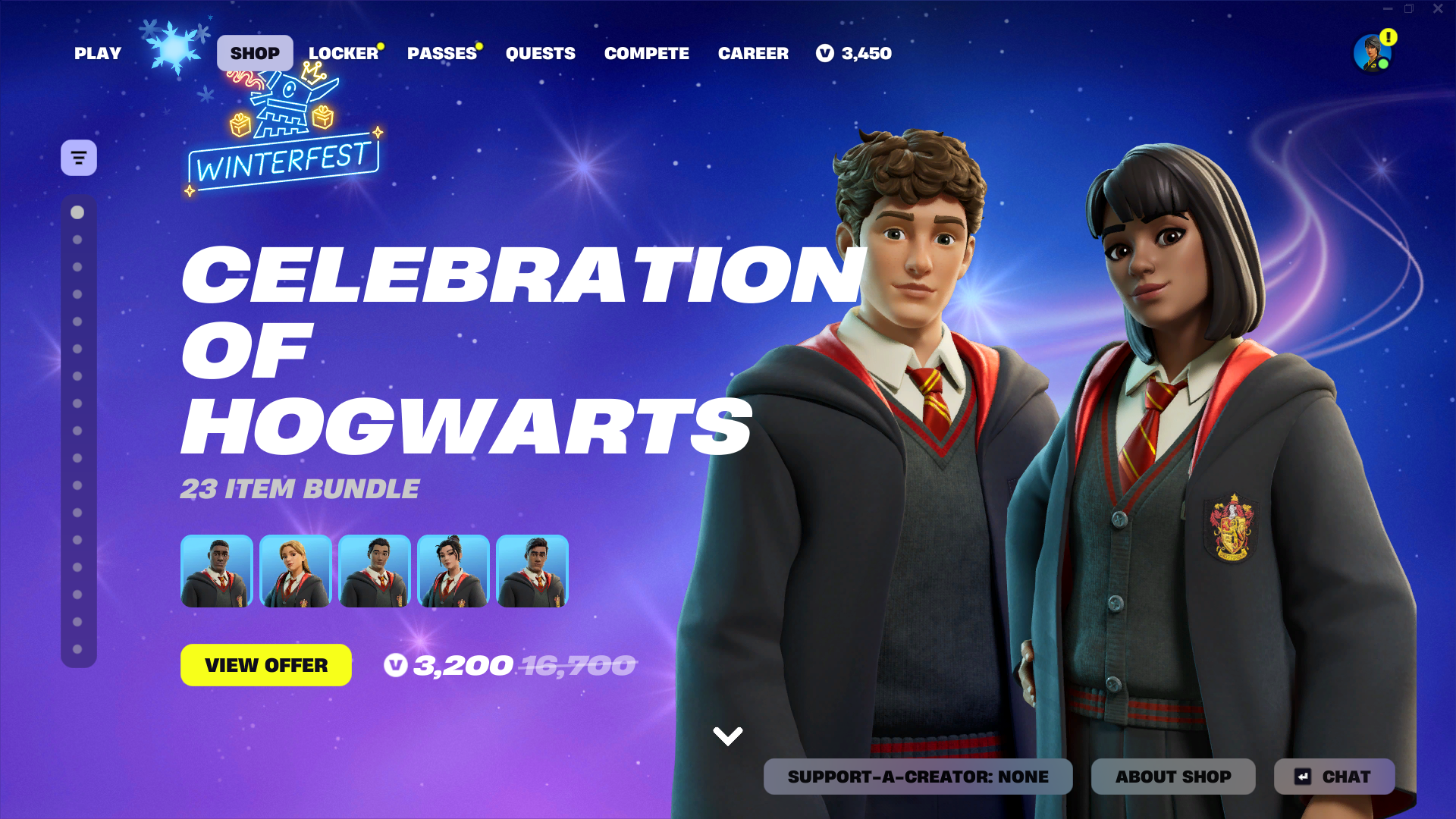 Вы можете приобрести эти предметы по отдельности, но покупка комплекта Celebration of Hogwarts — более выгодный вариант. Он стоит 3200 V-Bucks и включает в себя почти все косметические предметы на тему Harry Potter. Единственные предметы на тему Harry Potter, не входящие в комплект, — это Wizarding World Aston Martin и Hogwarts wheels.