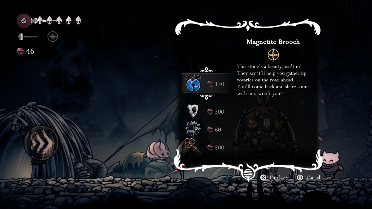 Среди первых торговцев, которых вы встретите, есть Шакра. Ее можно найти в уютном месте в верхнем левом углу Костного Мозга, который расположен прямо перед регионом Мосхоум и битвой со вторым боссом, Колокольным Зверем.