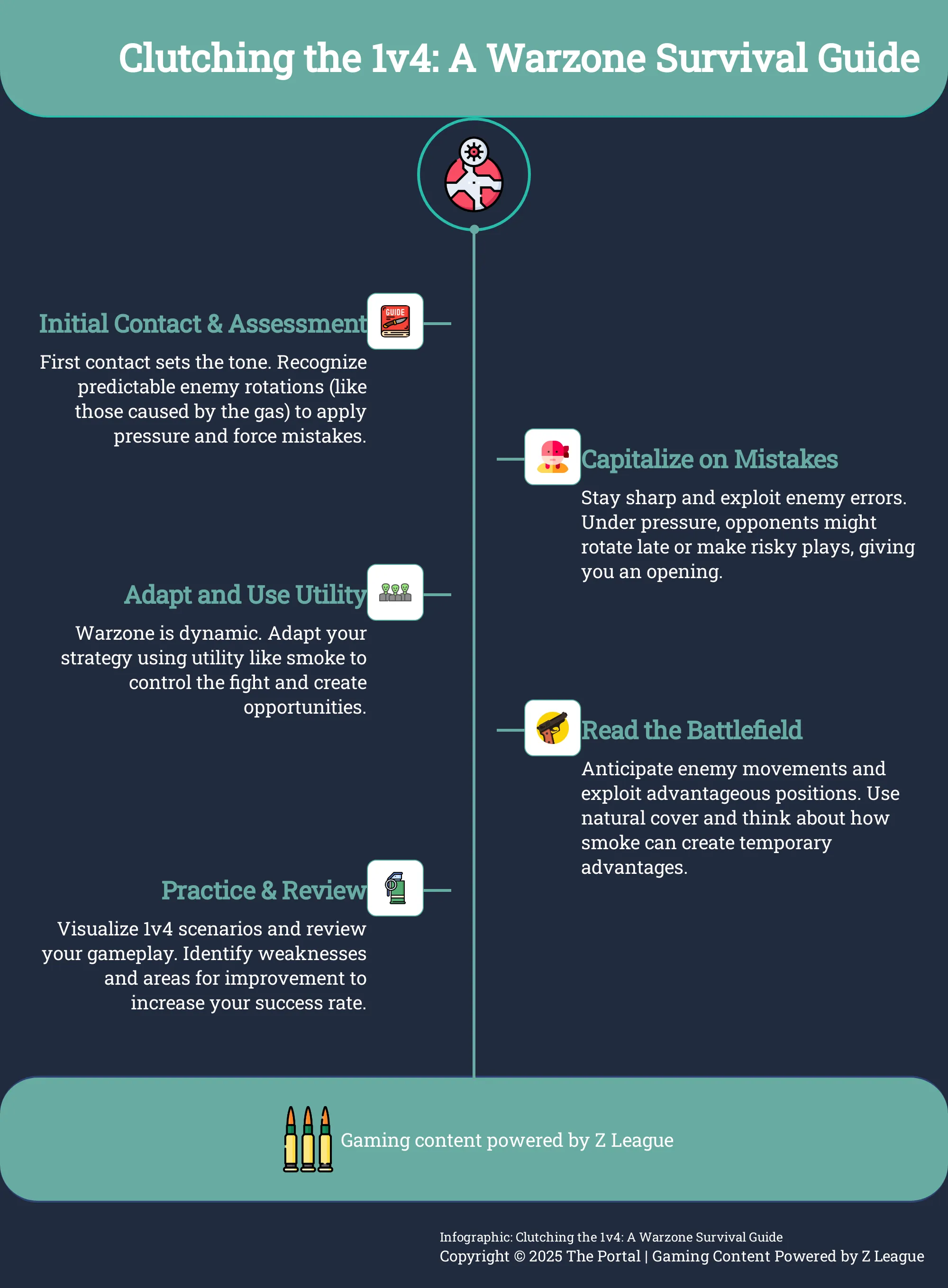 Рассмотрите использование ландшафта как вашего первого барьера. Используйте каменные сооружения, хребты и даже растительность для того, чтобы преградить обзор противнику, предоставив себе ценное время на перегруппировку, восстановление сил или дальнейшую разработку стратегии. Овладение искусством эффективного использования естественного укрытия может повлиять на исход столкновения 1 против 4. Этот гид по военной тактике предлагает несколько интригующих сходств в стратегиях, применяемых в Warzone.