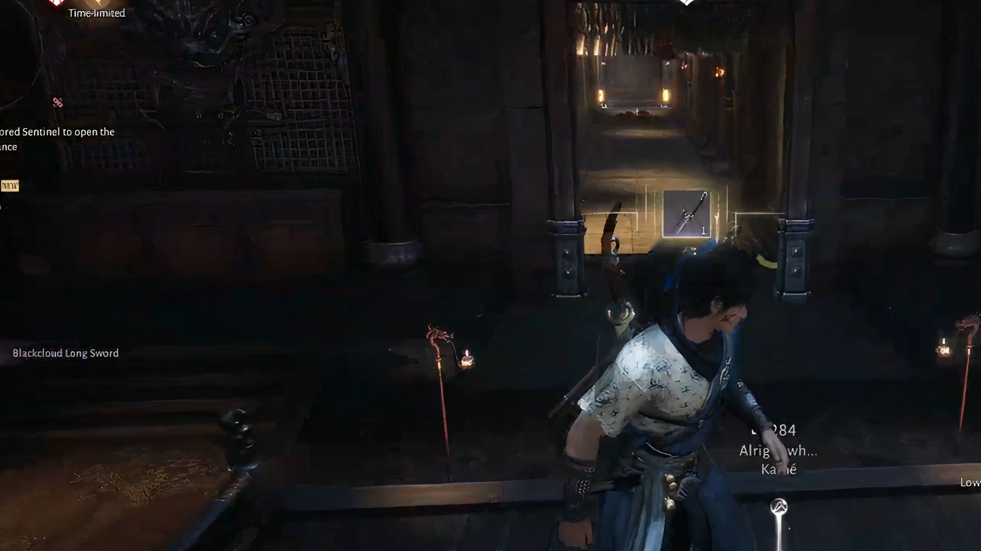Далее вы пройдете по коридору, заполненному падающими шипами. Быстро пробегите мимо них и потяните за рычаг в конце. Это откроет еще одну колокольчик и молоток головоломку. Решите ее, и дверь в зал, где выставлен Blackcloud Long Sword, откроется.