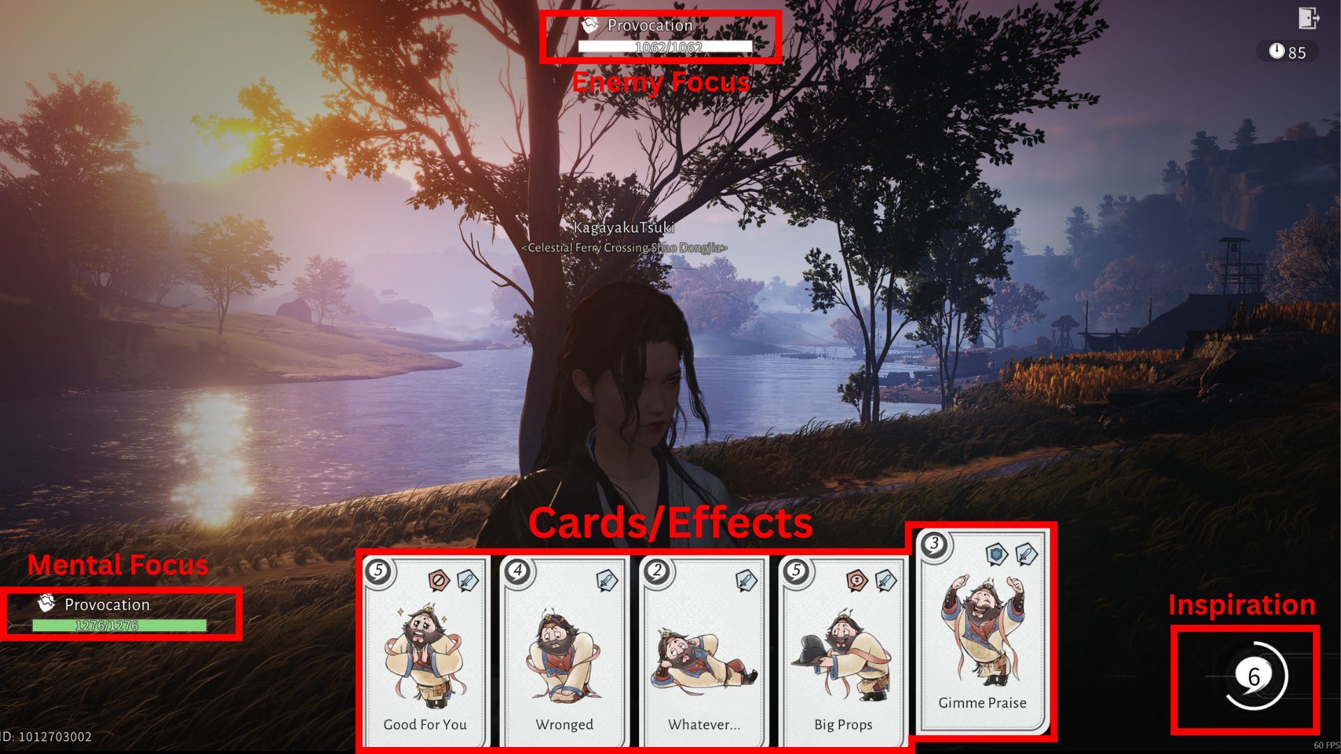В начале мини-игры Gift of Gab экран преображается, и вы потеряете доступ к своим обычным способностям, таким как Meridian Touch. Вместо этого на экране будут отображаться полоски, таймер, карты и счёт.