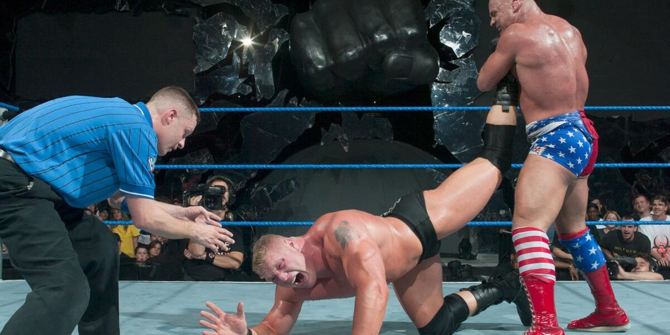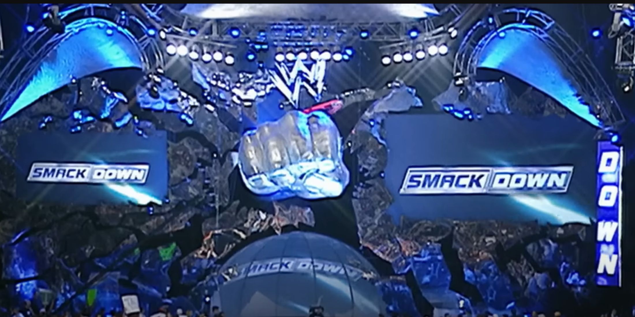 Smackdown Fist, как изображено в эпизоде WWE склада, представляет собой массовую конструкцию из стекловолокна 6000 фунтов, укрепленная со стальными стержнями, транспортируемой в различные города в 18-колесном грузовике и разделенную на три части. Эта культовая опора была представлена в более чем 300 эпизодах Smackdown, в первую очередь в период безжалостной агрессии, до того, как она была официально вышла на пенсию в январе 2008 года.