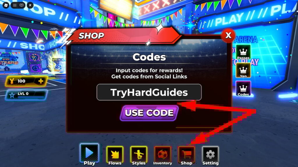 - Нажмите на красную кнопку Магазин в нижней части экрана, затем нажмите кнопку Коды.