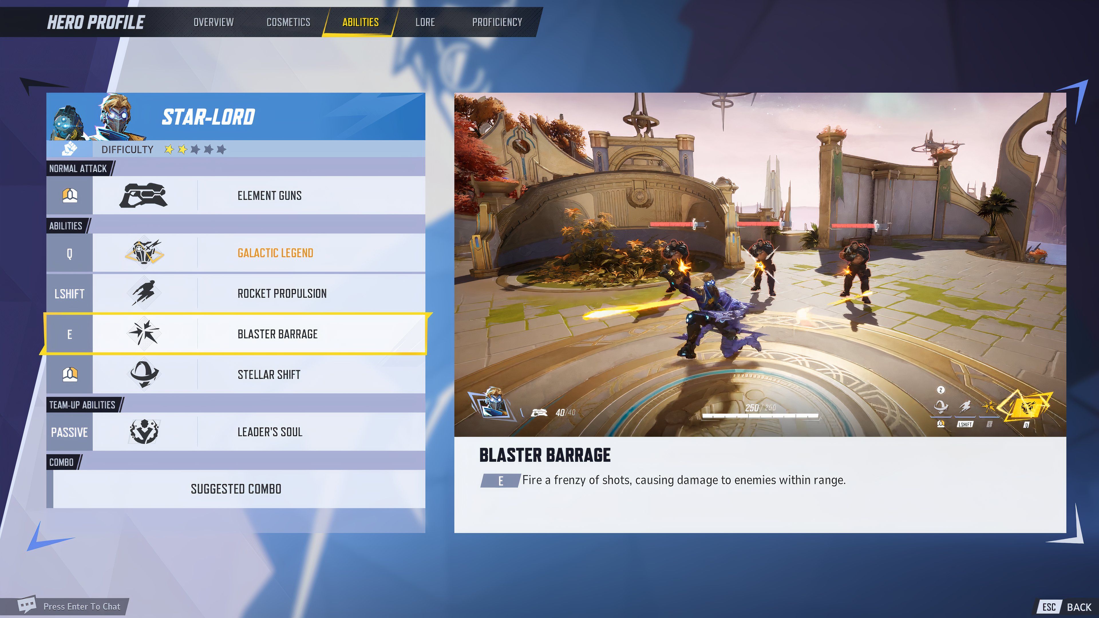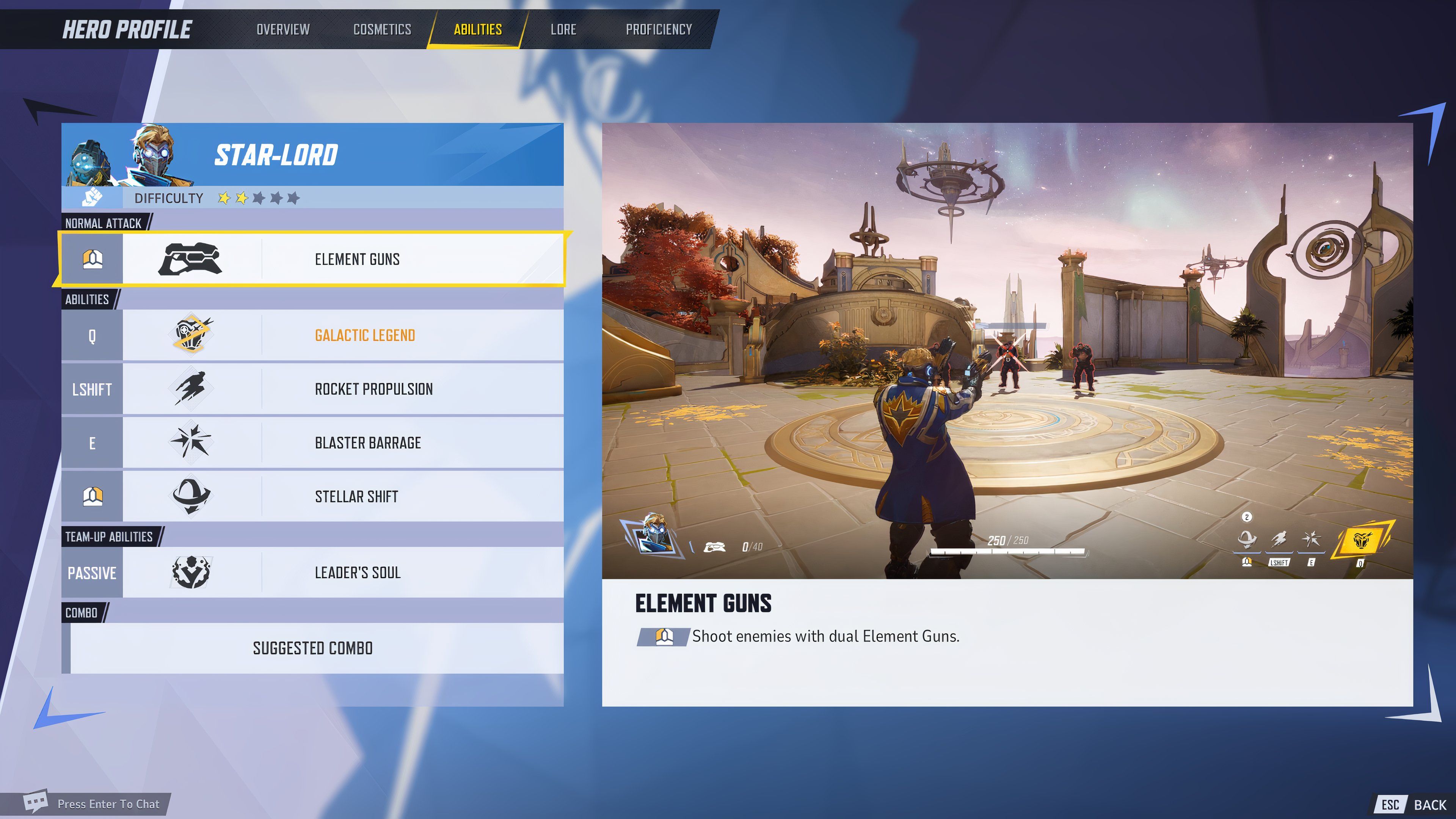 Высокая скорость стрельбы из оружия впечатляет, когда игроки могут нацеливаться на противников и отслеживать их с помощью сканирования, но поскольку он стреляет короткими очередями, оружие требует частой перезарядки. В результате способность Звездного Лорда быстро уйти от опасности с помощью Stellar Shift становится стратегически важной.